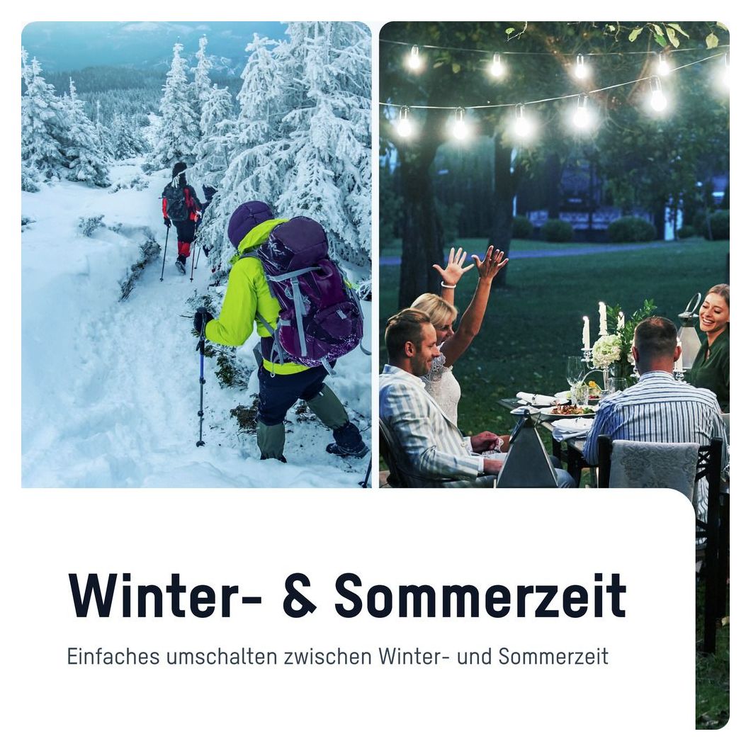 18 Programme für die Ein- und Ausschaltfunktion, für umfangreiche Anwendungsmöglichkeiten: Wohnraumbeleuchtung, Heizungspumpen, Aquarien, Heizlüfter, WLAN-Router, Stereoanlagen, TV-Geräte, uvm. lassen sich kinderleicht programmiert vom Stromnetz trennen und wieder einschalten. Umstellung von Winter- zu Sommerzeit mit einem Tastendruck!