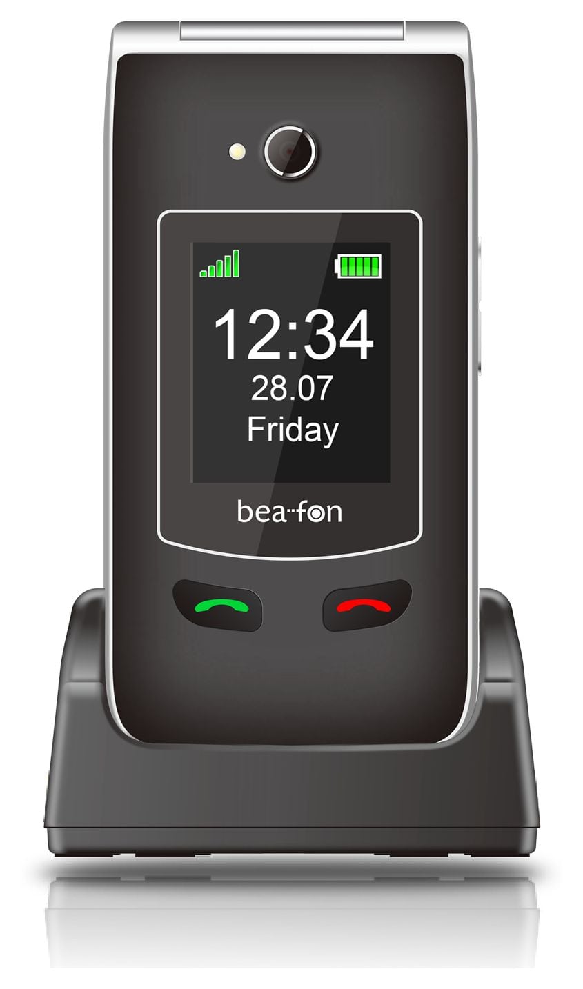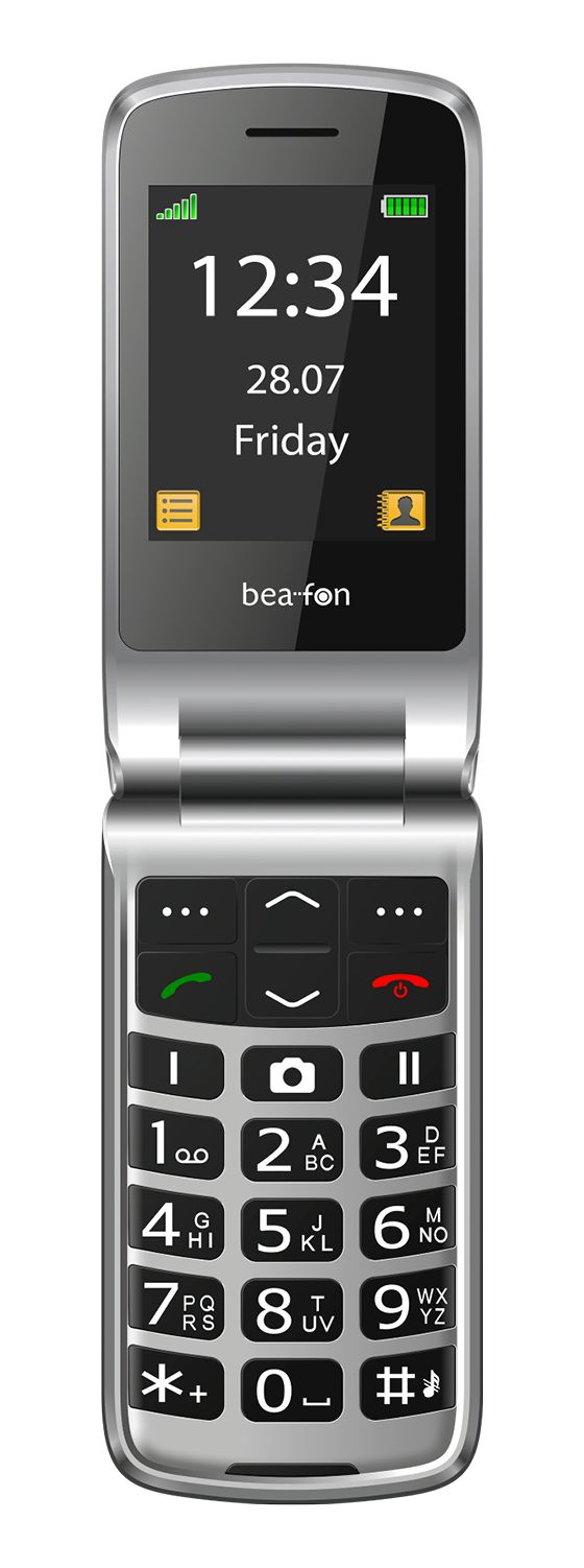 Durch sein großes XXL 7,11 cm Farbinnen & seinem großen XXL 4,49 cm Farbaußendisplay werden Bedienerelemente und Zahlen besonders groß dargestellt um Ihnen alle Eingaben zu erleichtern. Mit den beiden auf der Vorderseite hinterlegten Gesprächsannahme & Beenden Taste können (Optional) eingehende Gespräche angenommen und beendet werden. Sobald Nummern oder Kontaktbilder von Ihnen hinterlegt wurden erscheinen diese bei Gesprächseingang auf dem Außendisplay.