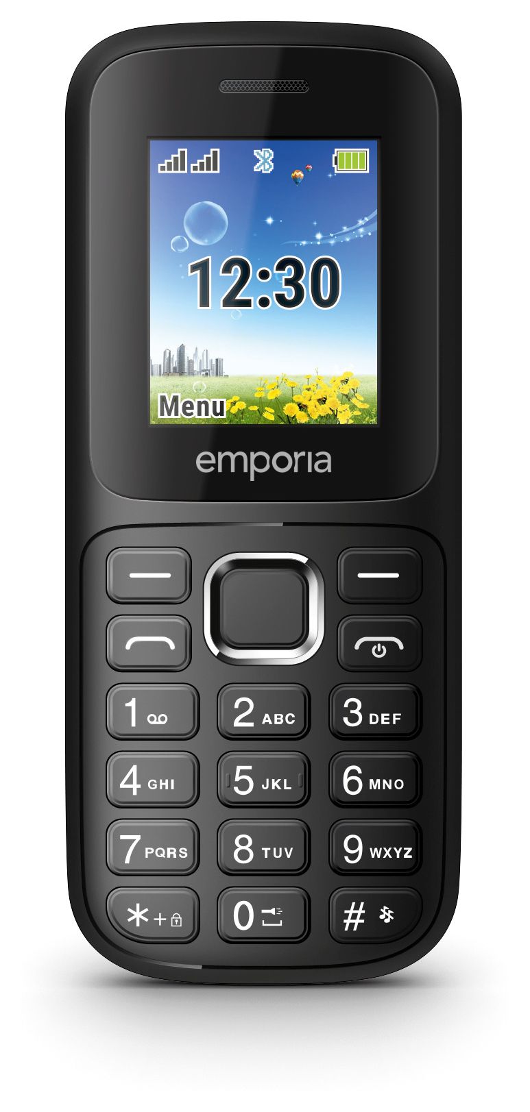 Emporia emporia313. Formfaktor: Balken. SIM-Kartensteckplätze: Dual-SIM. Bildschirmdiagonale: 4,5 cm (1.77"), Display-Auflösung: 160 x 128 Pixel. Auflösung Rückkamera (numerisch): 0,08 MP. Bluetooth. Akku-/Batterietechnologie: Lithium-Ion (Li-Ion), Akku-/Batteriekapazität: 800 mAh, Standby-Zeit (2G): 240 h. Gewicht: 64,6 g. Produktfarbe: Schwarz