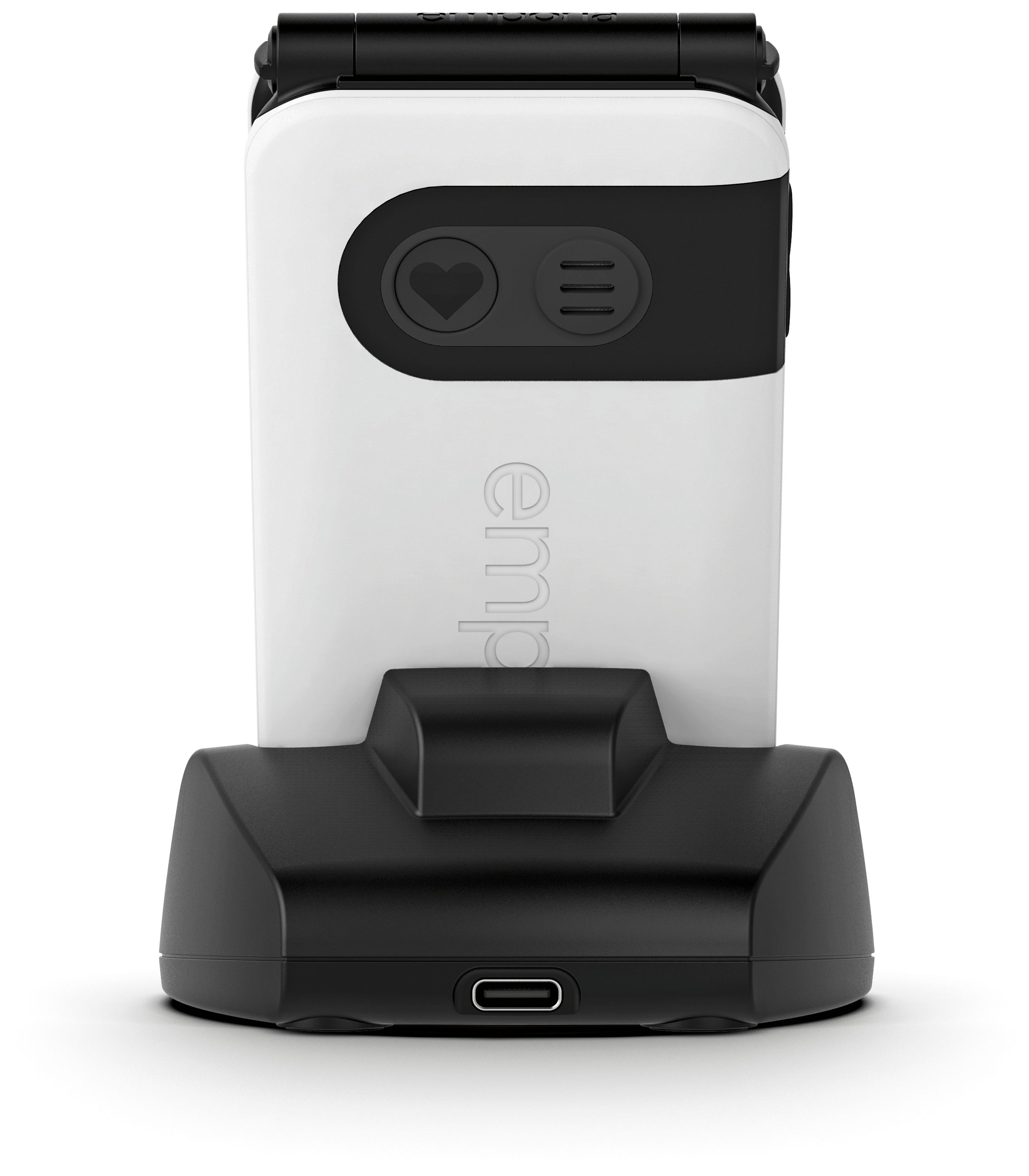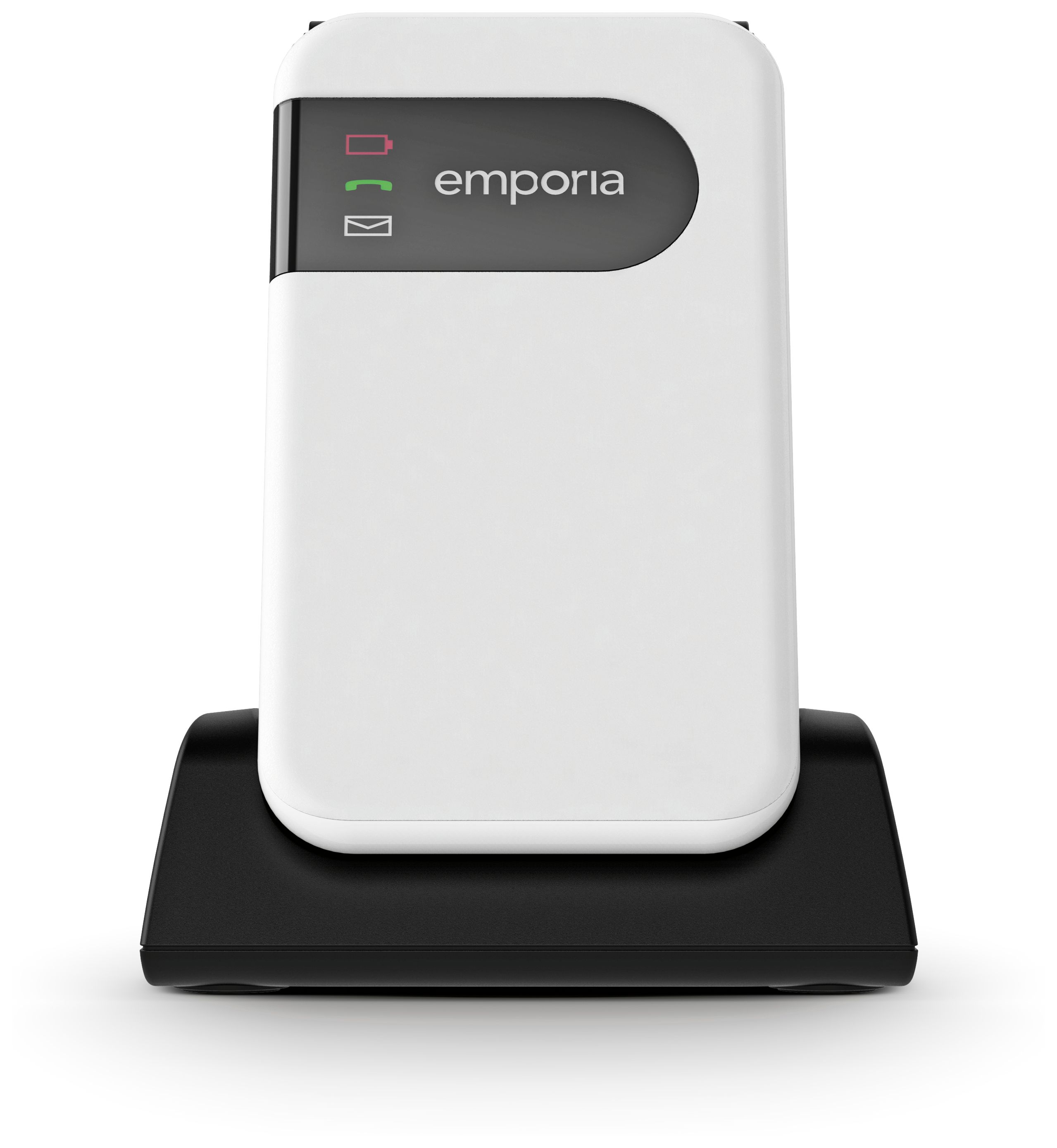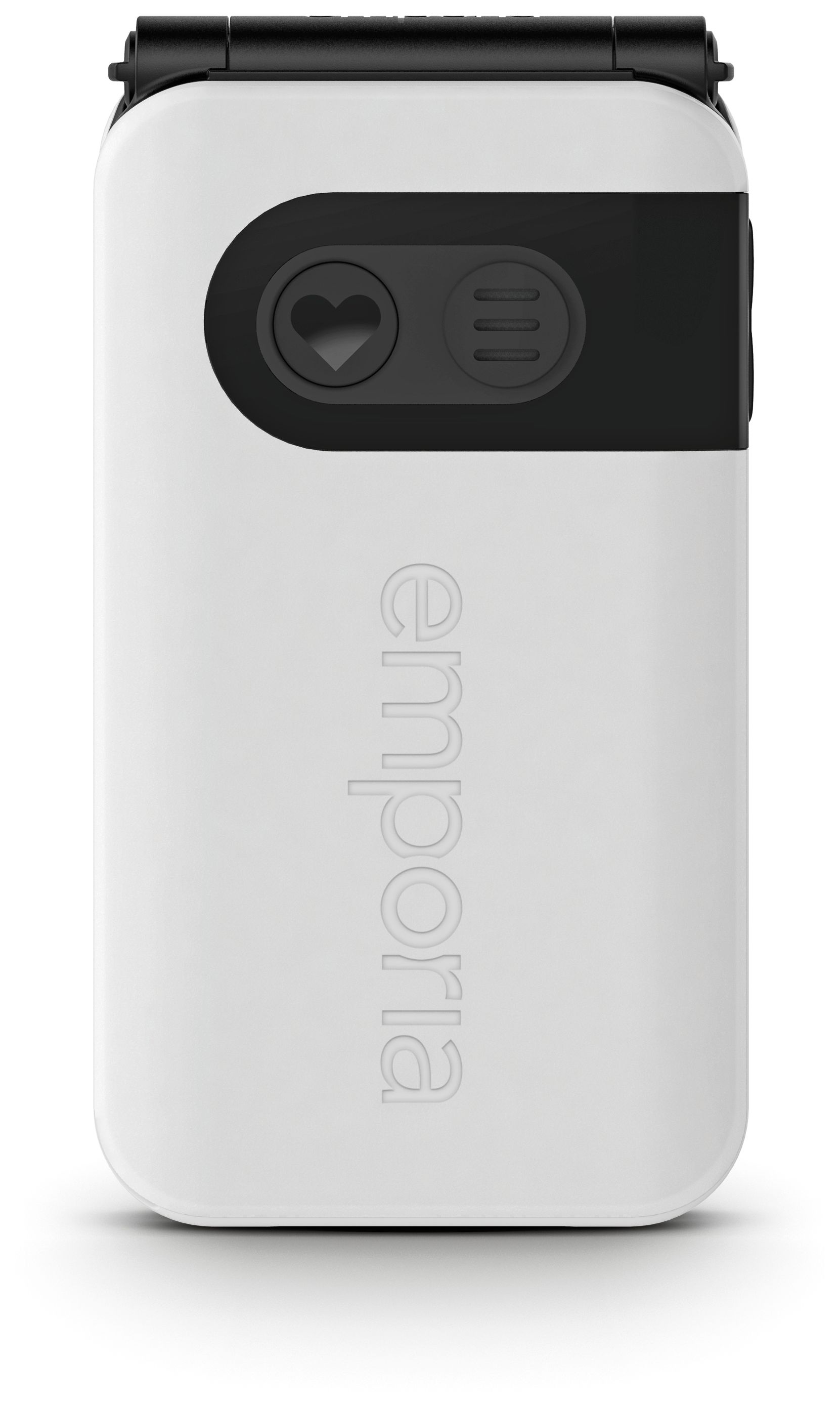 Auf der Rückseite ist das Telefon mit der bewährten, patentierten emporia-Notfall-Taste ausgestattet, mit der schnell und unkompliziert Hilfe verständigt werden kann. Einfach die Taste mit dem Herz drücken, und schon wird die Rettungskette aktiviert.