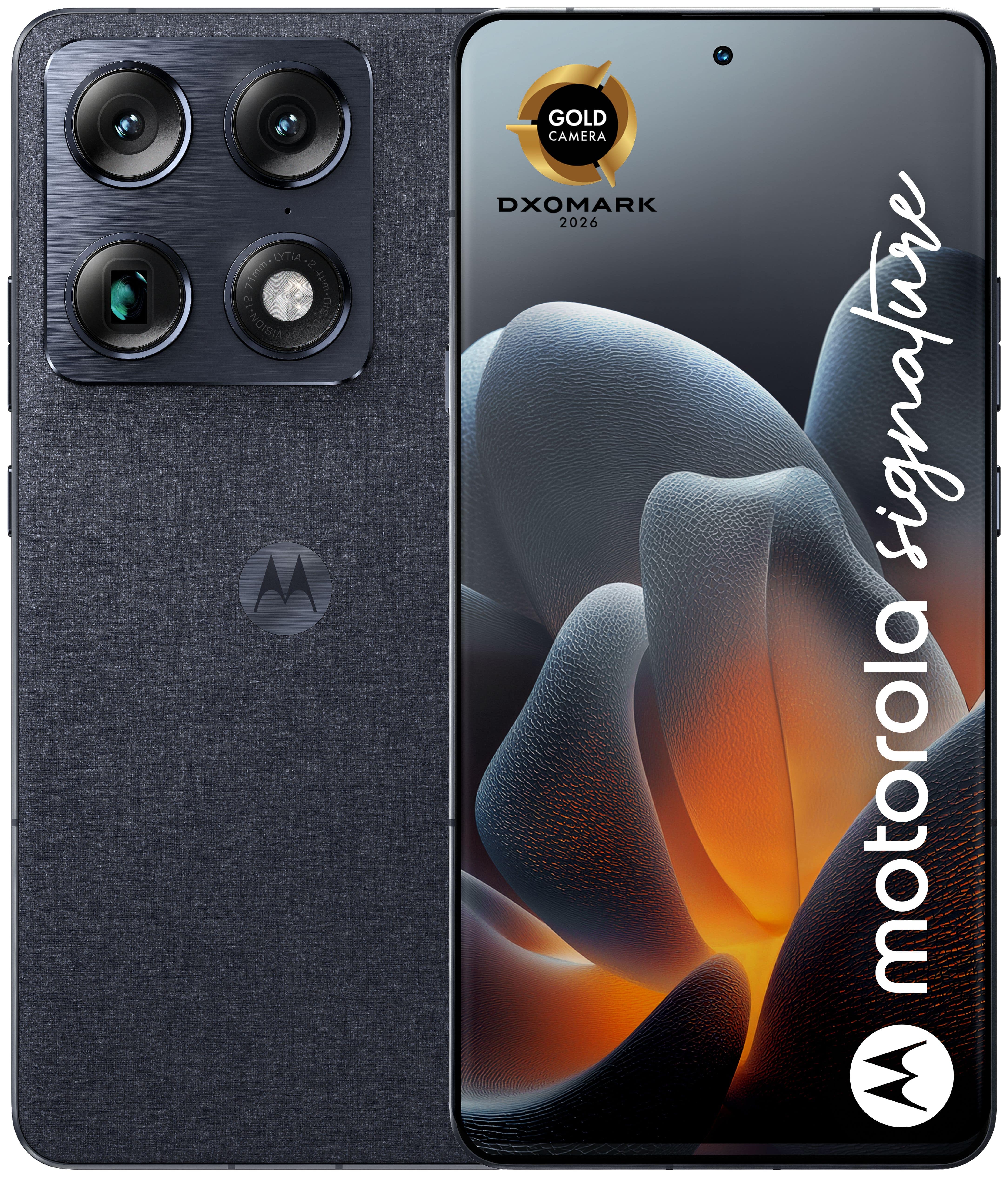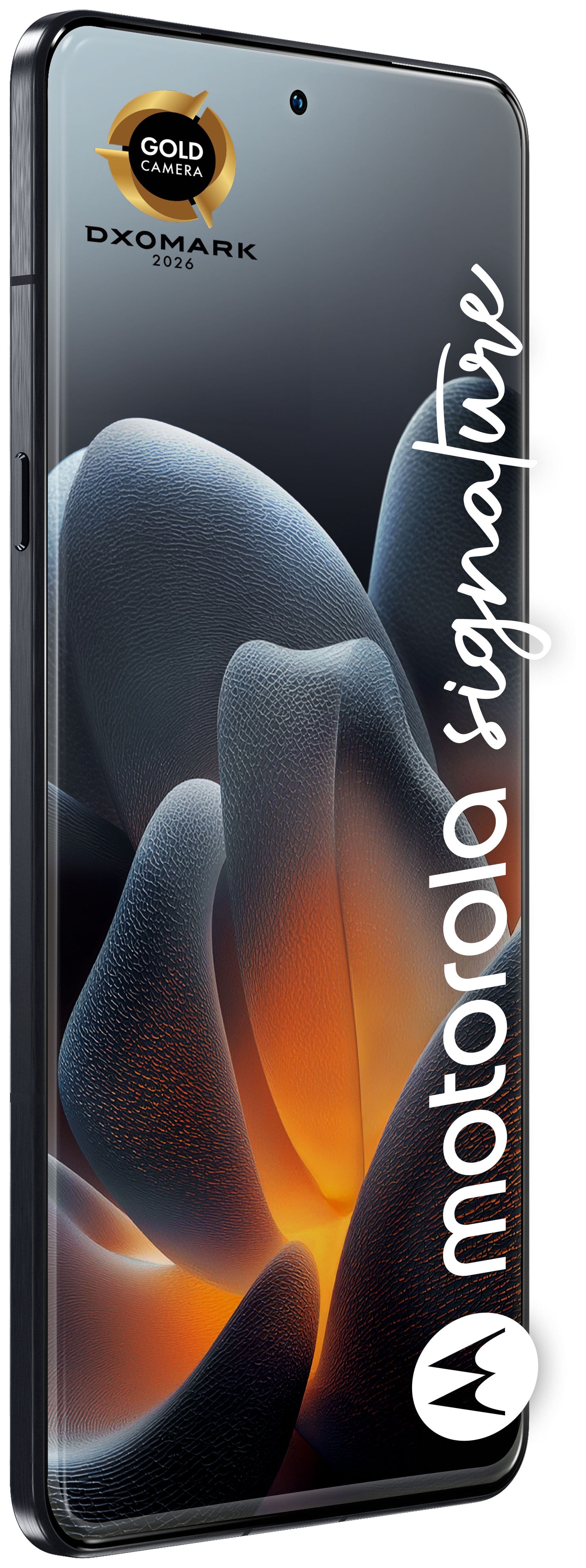 Wir präsentieren die brandneue motorola signature-Serie – eine sinnvolle Kombination aus Technologie und Design, die die Motorola-DNA widerspiegelt. Angefangen bei den konturierten Kanten und einem ultraflachen Profil, das so gestaltet ist, dass es die raffinierteste Silhouette bildet, bis hin zum Aluminium im gesamten Rahmen, das für mehr Eleganz und Widerstandsfähigkeit verwendet wird. In Kombination mit einzigartigen Oberflächen und Materialien ergibt sich ein sensorisches Erlebnis, das unvergleichlich ist. Im Inneren bieten motorola signature-Geräte ultimative Leistung, die mit dem DXOMARK Gold Label für höchste Standards in Sachen Bildqualität ausgezeichnet wurde. Mit Sony LYTIA™-Sensoren, Dolby Vision®-Aufnahme und dem Snapdragon® 8 Gen 5 Prozessor der nächsten Generation hast du die nötige Leistung, um Momente wie nie zuvor einzufangen. Mit exklusiven, maßgeschneiderten Services und bis zu sieben Jahren Betriebssystem- und Sicherheitsupdates wird dein Gesamterlebnis aufgewertet.(1) Erwarte das Beste von motorola signature.