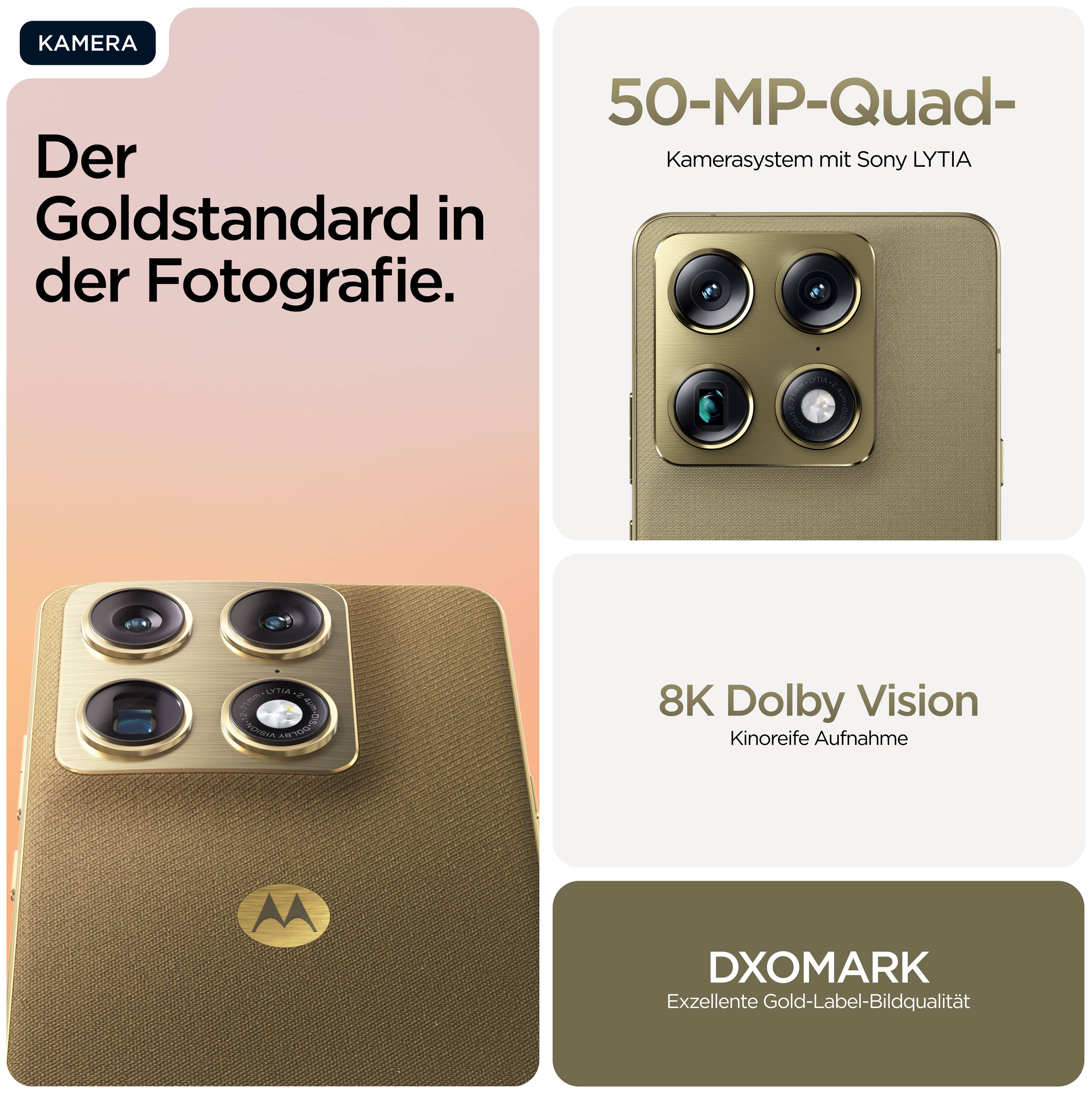 Wir präsentieren die brandneue motorola signature-Serie – eine sinnvolle Kombination aus Technologie und Design, die die Motorola-DNA widerspiegelt. Angefangen bei den konturierten Kanten und einem ultraflachen Profil, das so gestaltet ist, dass es die raffinierteste Silhouette bildet, bis hin zum Aluminium im gesamten Rahmen, das für mehr Eleganz und Widerstandsfähigkeit verwendet wird. In Kombination mit einzigartigen Oberflächen und Materialien ergibt sich ein sensorisches Erlebnis, das unvergleichlich ist. Im Inneren bieten motorola signature-Geräte ultimative Leistung, die mit dem DXOMARK Gold Label für höchste Standards in Sachen Bildqualität ausgezeichnet wurde. Mit Sony LYTIA™-Sensoren, Dolby Vision®-Aufnahme und dem Snapdragon® 8 Gen 5 Prozessor der nächsten Generation hast du die nötige Leistung, um Momente wie nie zuvor einzufangen. Mit exklusiven, maßgeschneiderten Services und bis zu sieben Jahren Betriebssystem- und Sicherheitsupdates wird dein Gesamterlebnis aufgewertet.(1) Erwarte das Beste von motorola signature.