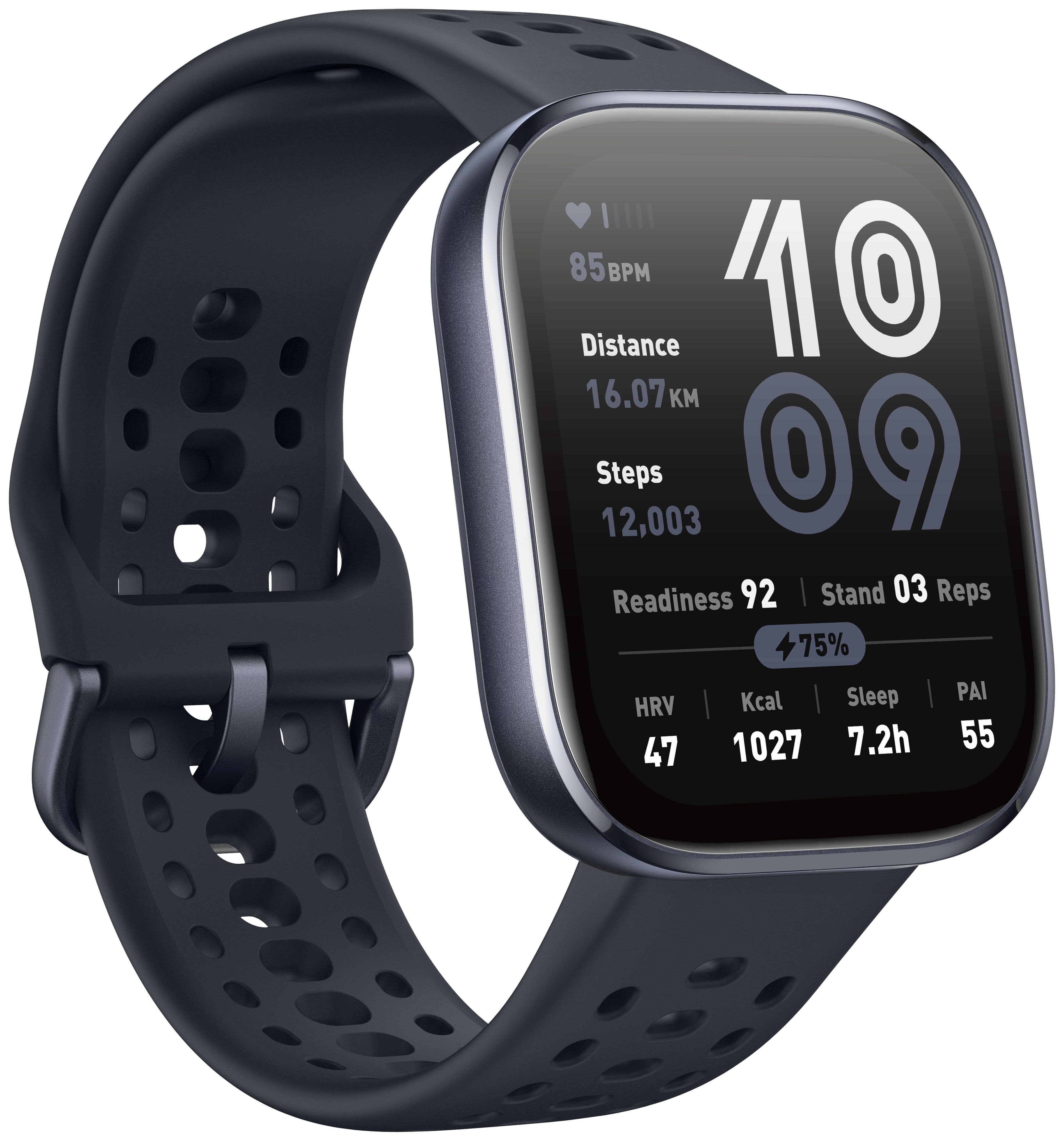 Amazfit Bip 6 Black. Bildschirmdiagonale: 5 cm (1.97"), Bildschirmtechnologie: AMOLED, Display-Auflösung: 390 x 450 Pixel, Touchscreen. RAM-Kapazität: 64 MB, Flash-Speicher: 512 GB. GPS. Akku-/Batteriekapazität: 340 mAh. Gewicht: 27,9 g. Bandmaterial: Silikon, Armbandfarbe: Schwarz. Installiertes Betriebssystem: Amazfit OS