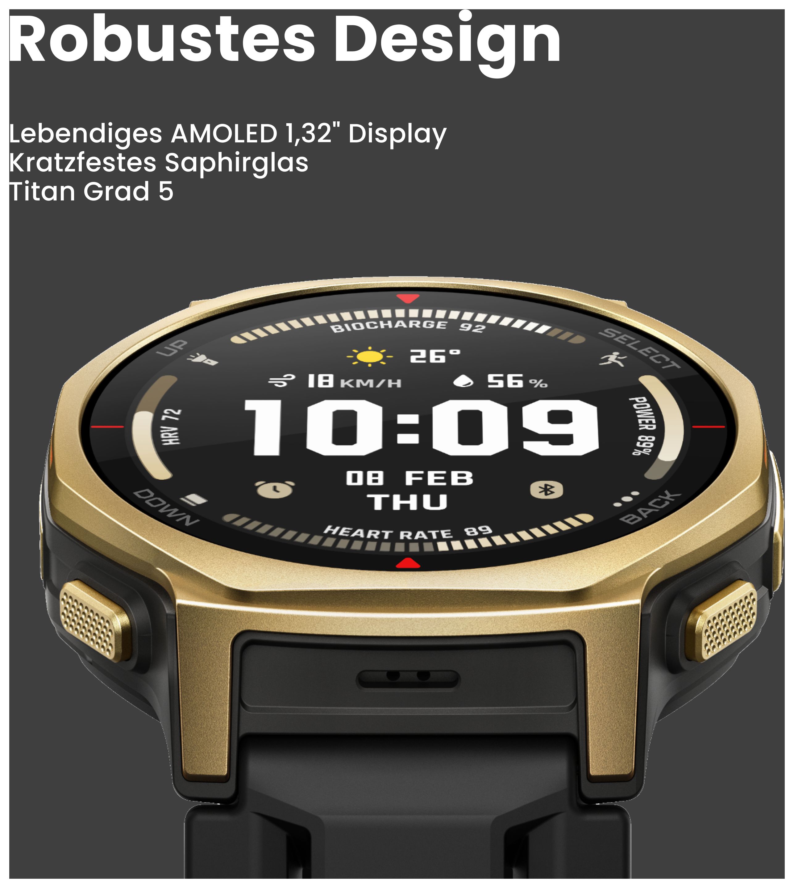 T-Rex 3 Pro Digital 44 mm Smartwatch Rund 353 ppi (Schwarz)