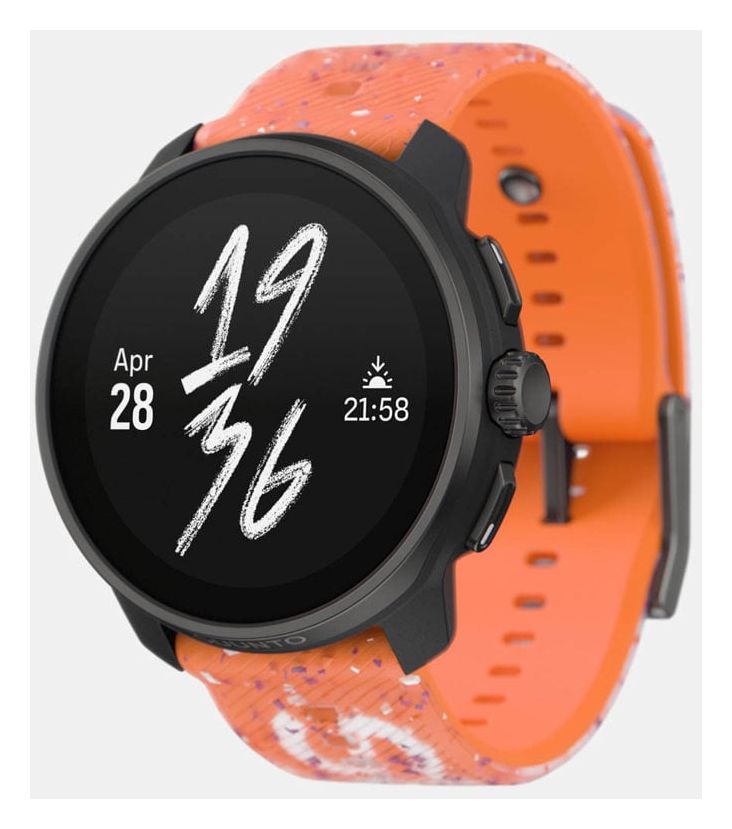 Suunto SS051016000. Bildschirmdiagonale: 3,35 cm (1.32"), Bildschirmtechnologie: AMOLED, Display-Auflösung: 466 x 466 Pixel, Touchscreen. GPS. Gewicht: 60 g. Bandmaterial: Silikon, Armbandfarbe: Orange