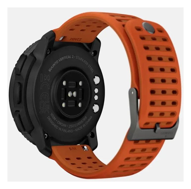 Suunto Vertical 2. Bildschirmdiagonale: 3,81 cm (1.5"), Bildschirmtechnologie: AMOLED, Display-Auflösung: 466 x 466 Pixel, Touchscreen. GPS. Gewicht: 87 g. Wasserdicht bis: 100 m, Bandmaterial: Silikon, Armbandfarbe: Orange