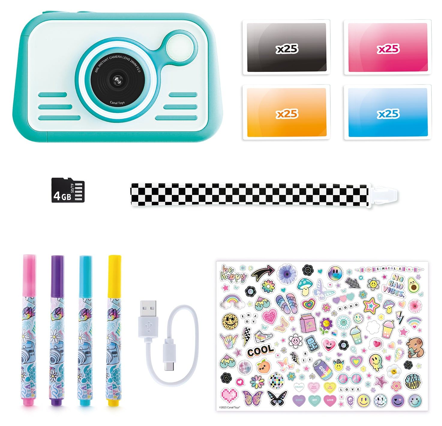 Instant Camera 2.0, 4GB SD-Speicherkarte, 100 Blatt Fotopapier, 4 Farbmarker Stifte, 4 Farbmarker Stifte, 8+