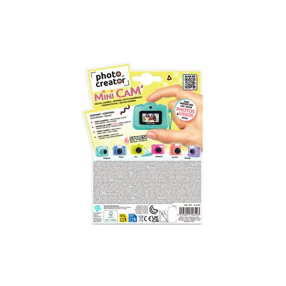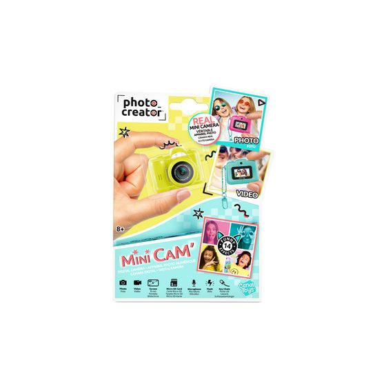 Canal Toys Photo Creator CLK062. Produktfarbe: Gelb, Fotoeffekte: Filter, Kompatible Speicherkarten: MicroSD (TransFlash). Display-Typ: LCD, Bildschirmdiagonale: 2,44 cm (0.96"). Höhe: 46,8 mm, Tiefe: 34,6 mm, Breite: 26,9 mm. Verpackungsbreite: 135 mm, Verpackungstiefe: 30 mm, Verpackungshöhe: 200 mm. Mitgelieferte Kabel: USB