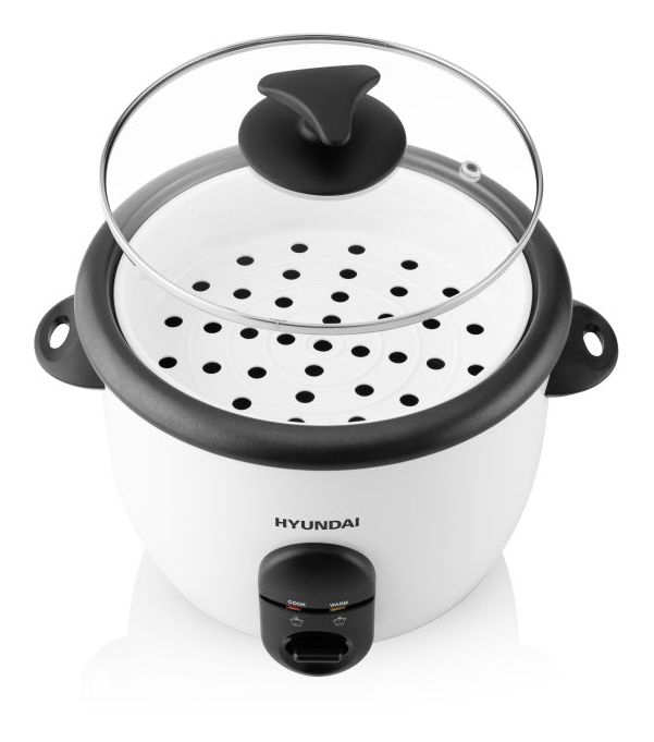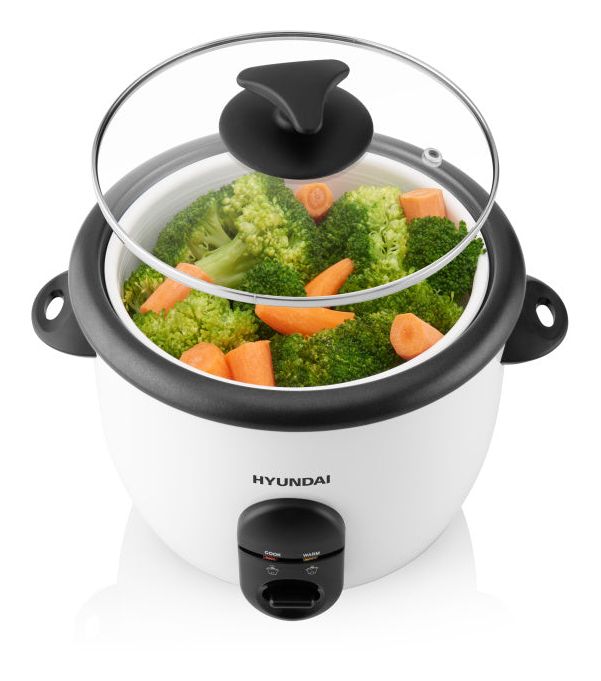 Dieser Reiskocher von Hyundai verfügt auch über einen Aufsatz zum Erhitzen und Dampfgaren von Lebensmitteln. So können Sie ganz einfach gleichzeitig Reis und gedünstetes Gemüse zubereiten.