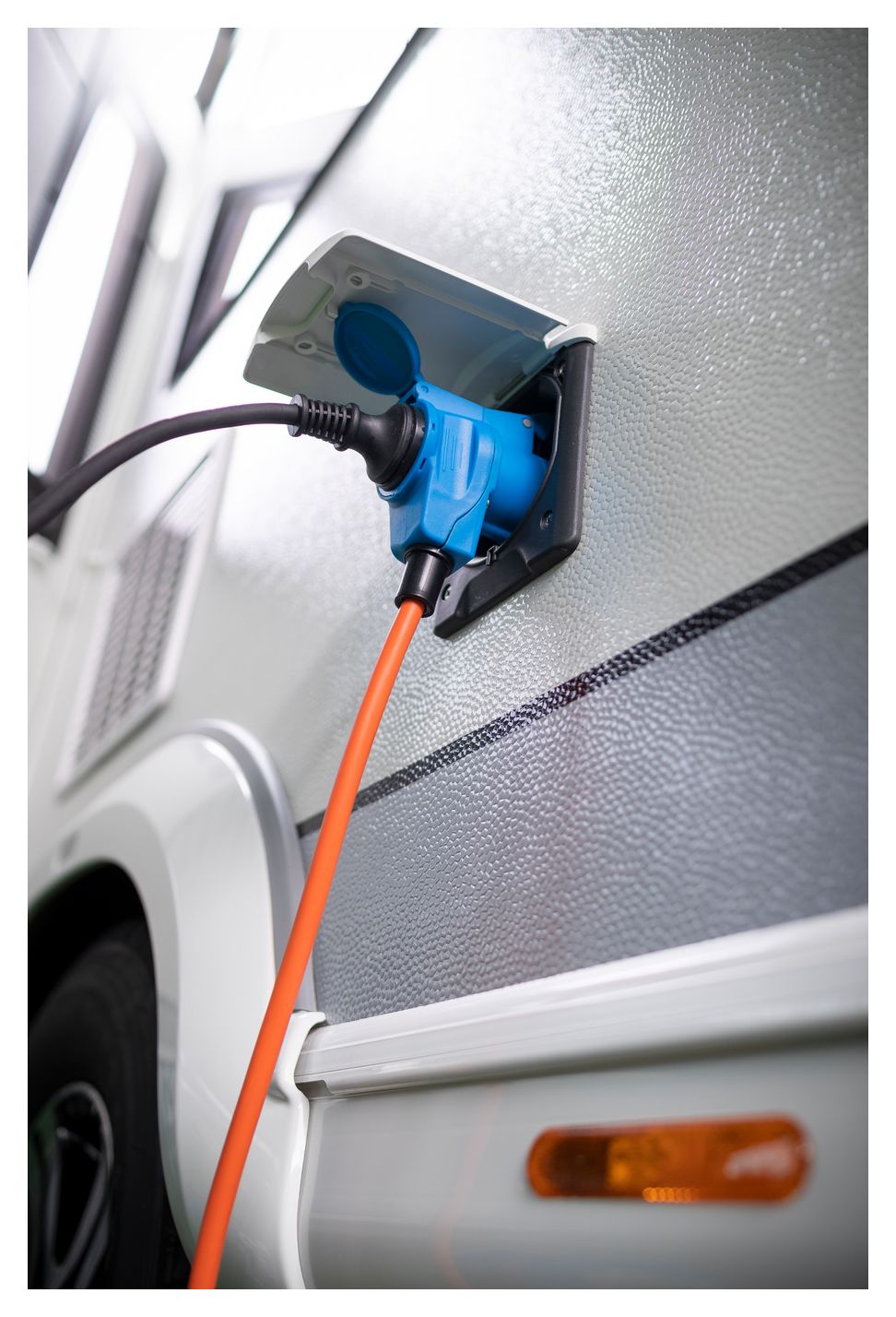 Das CEE Verlängerungskabel von Brennenstuhl verfügt über einen CEE-Stecker und Winkelkupplung inklusive einer Schutzkontakt-Kombisteckdose. Das CEE Kabel eignet sich dank der Schutzart IP44 und dem ölbeständigen RN-Kabel bestens für den ständigen Einsatz im Außenbereich, wie beispielsweise für Wohnwagen, Wohnmobil, beim Campen oder auch auf dem Boot. Das Caravan-Kabel in der Signalfarbe orange sorgt für extra mehr Sicherheit. Es ist nicht nur extrem robust, sondern überzeugt außerdem durch folgende Eigenschaften: