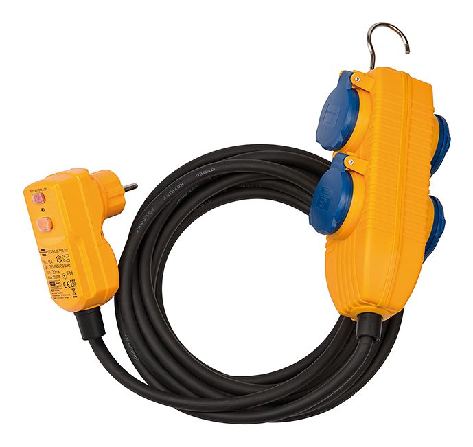 IP 54, 30mA, 5m, 4 Steckdosen, Schwarz/Blau/Orange