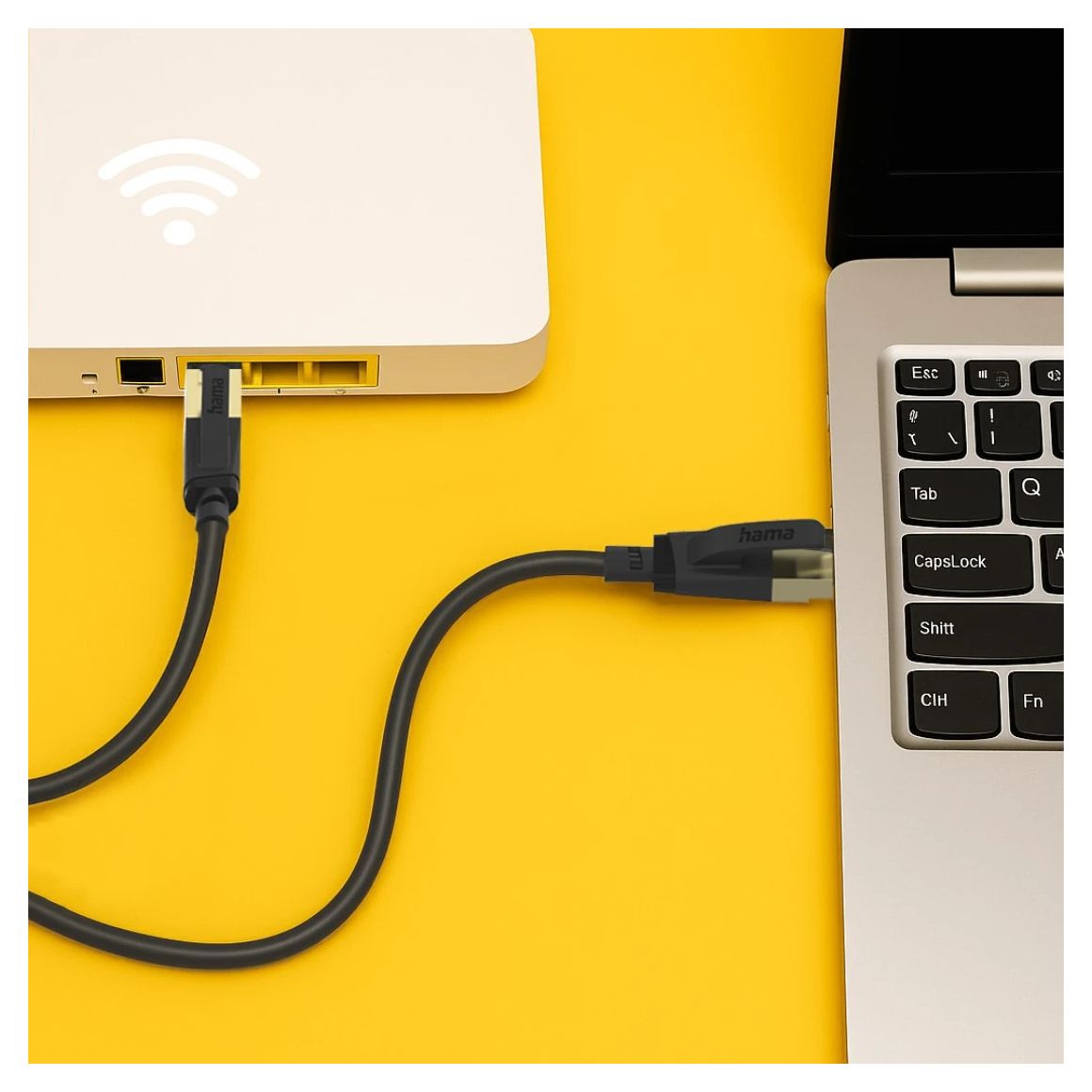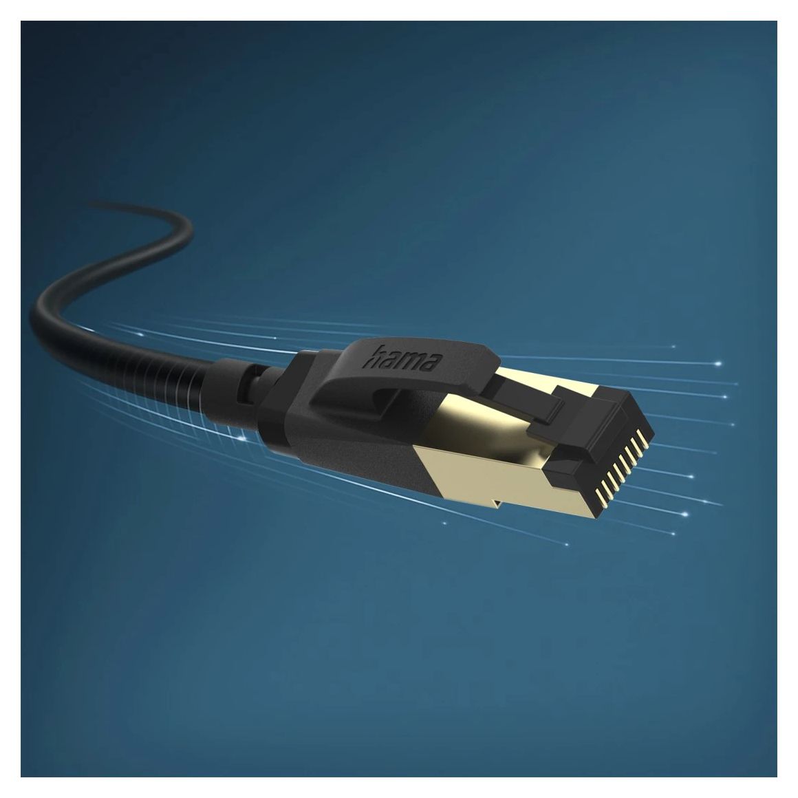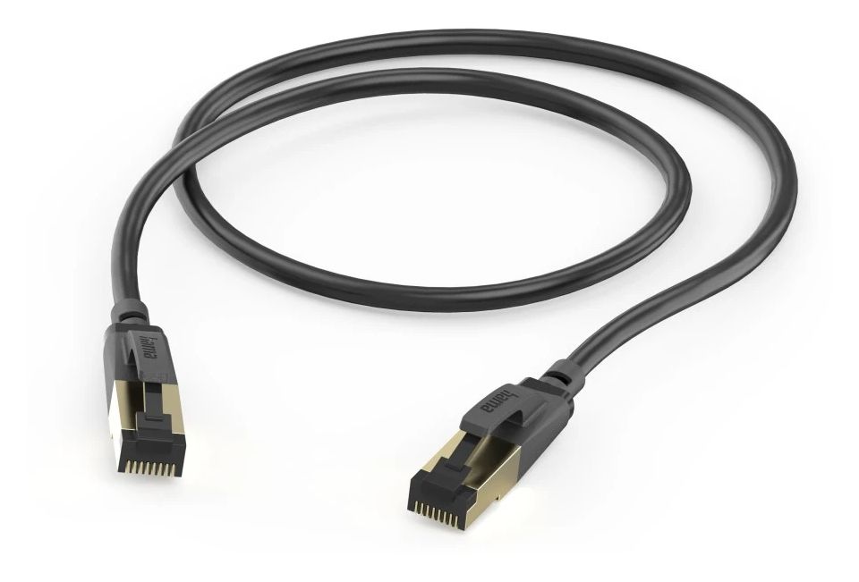 Hama 00202000. Kabellänge: 0,5 m, Kabelstandard: Cat8, Kabelschirmung: S/FTP (S-STP), Anschluss 1: RJ-45, Anschluss 2: RJ-45, Beschichtung Steckerkontakte: Gold, Datenübertragungsrate: 40000 Mbit/s, Produktfarbe: Schwarz