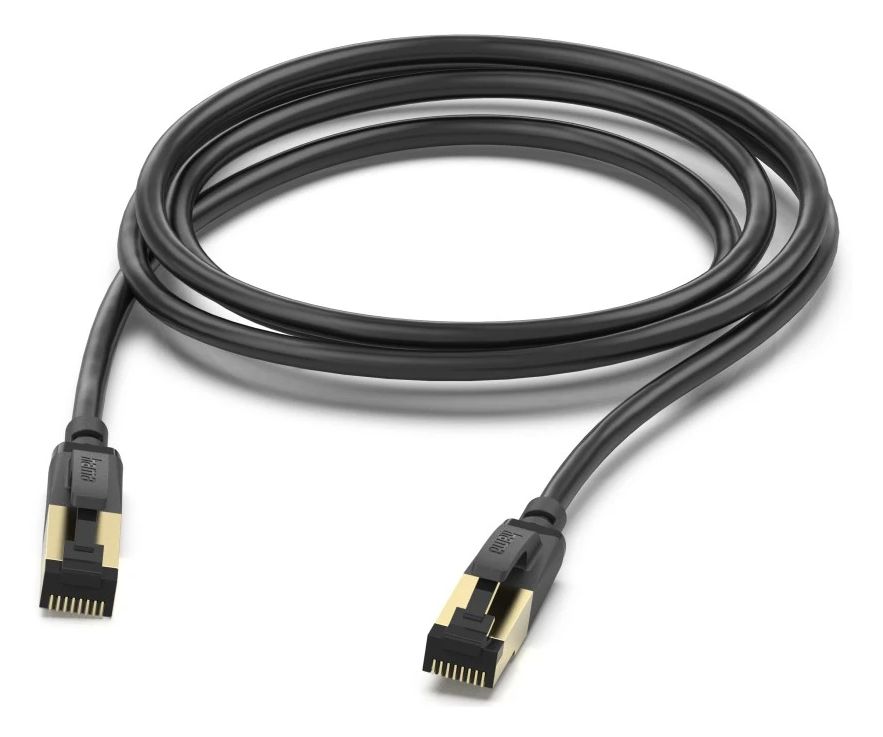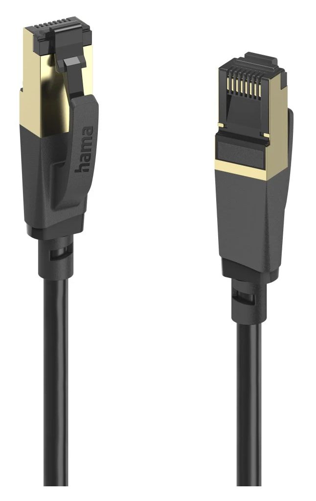 Hama 00202002. Kabellänge: 3 m, Kabelstandard: Cat8, Kabelschirmung: S/FTP (S-STP), Anschluss 1: RJ-45, Anschluss 2: RJ-45, Beschichtung Steckerkontakte: Gold, Datenübertragungsrate: 40000 Mbit/s, Produktfarbe: Schwarz