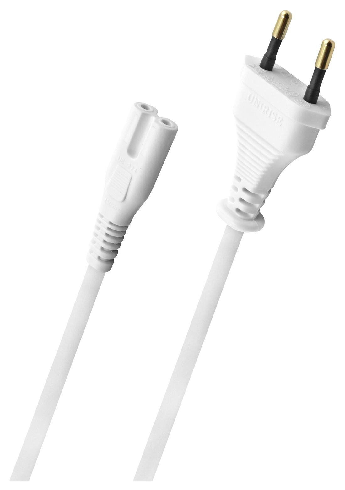 Oehlbach-Universal-Netzkabel mit Euro-Flachstecker und Kleingeräte-Kupplung, bestückt mit Innenleiter-Material aus hochreinem, sauerstofffreiem OFC-Kupfer. Eine Vielzahl von Elektro- und Multimedia-Kleingeräten wird über diese zuverlässige Leitung mit dem Stromnetz verbunden. Mit einer Länge von 1,5 m bis 5,0 m verbindet dieses wahlweise schwarze oder weiße Kabel auch Ihr Endgerät mit dem Stromnetz. Die angespritzten Stecker und die 24 Karat vergoldeten Kontakte garantieren eine lange Lebensdauer und hervorragende Kontaktsicherheit.