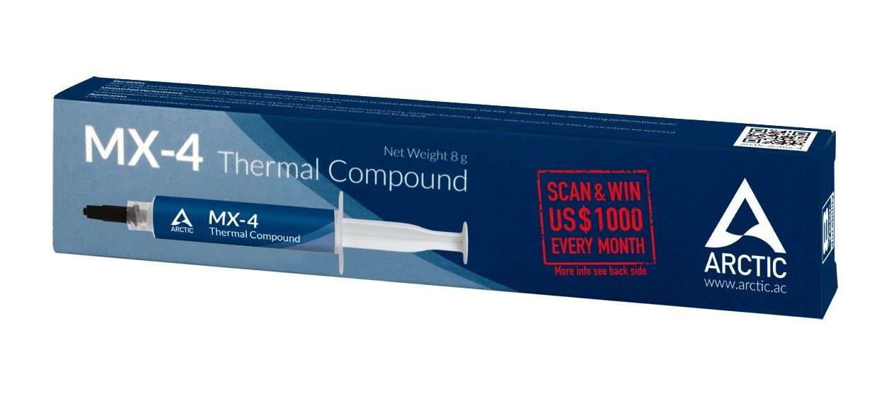 Die ARCTIC MX-4 Wärmeleitpaste besteht aus Kohlenstoff-Mikropartikeln, welche zu einer extrem hohen Wärmeleitfähigkeit führen. Damit ist garantiert, dass Wärme von der CPU oder GPU schnell und effizient abgeführt werden kann. Mit ihrer hervorragenden Leistung ist die MX-4 der beste Begleiter für Overclocker und Enthusiasten.