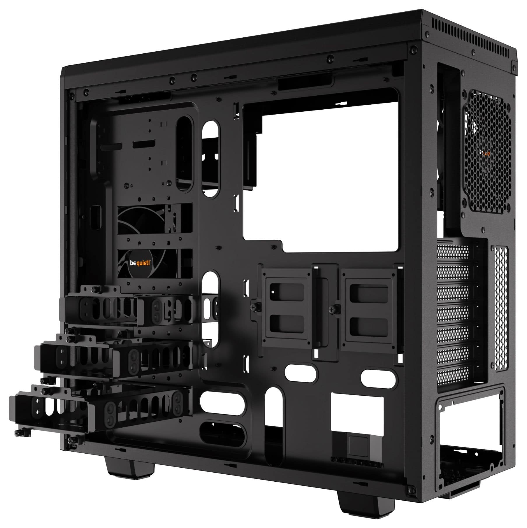 - Zwei vorinstallierte Pure Wings 2 Lüfter (120mm an der Rückseite, 140mm an der Front) bieten eine Vielzahl an Optimierungen für einen absolut ruhigen Luftstrom: