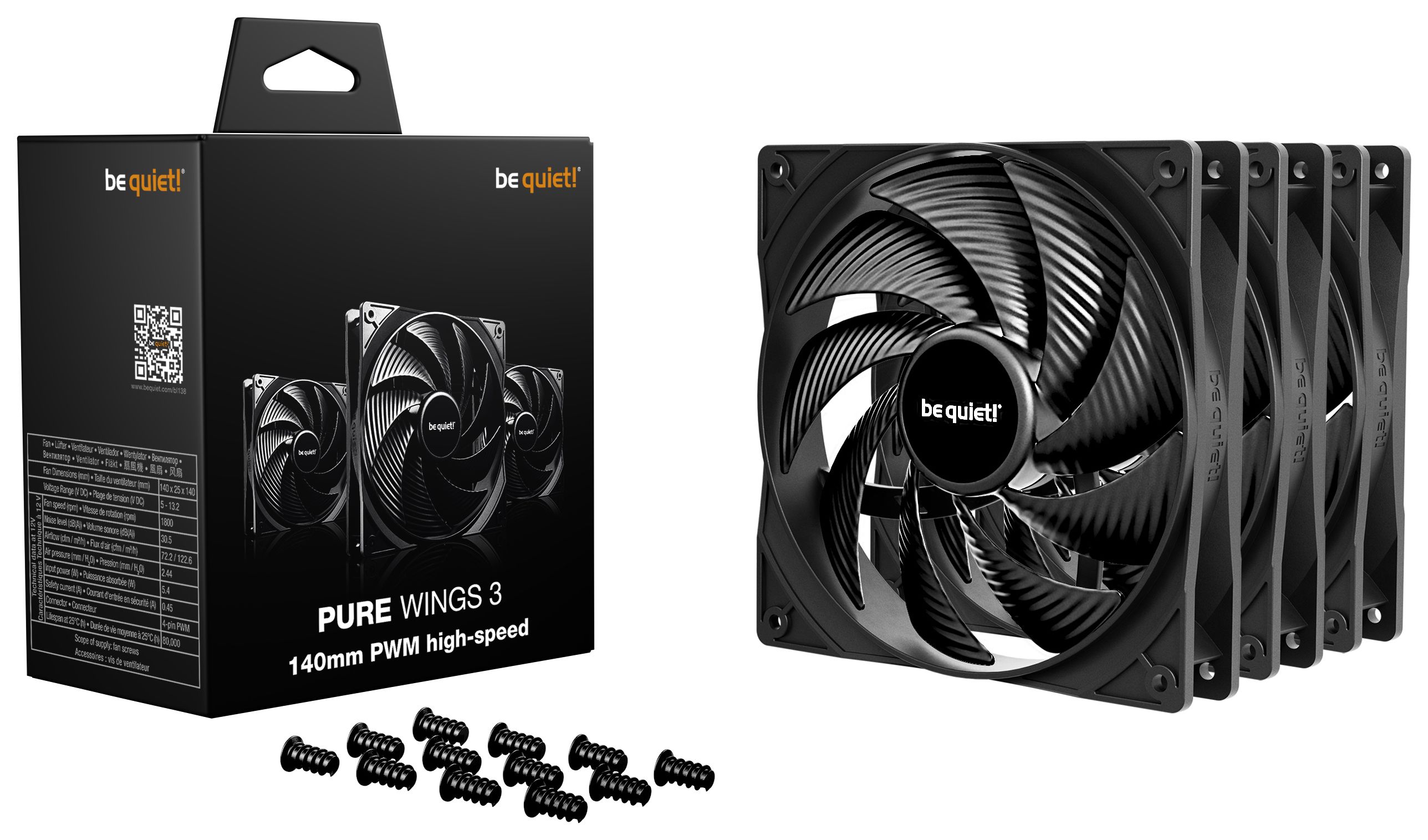 Pure Wings 3 140mm | PWM high-speed Triple Pack (Schwarz)