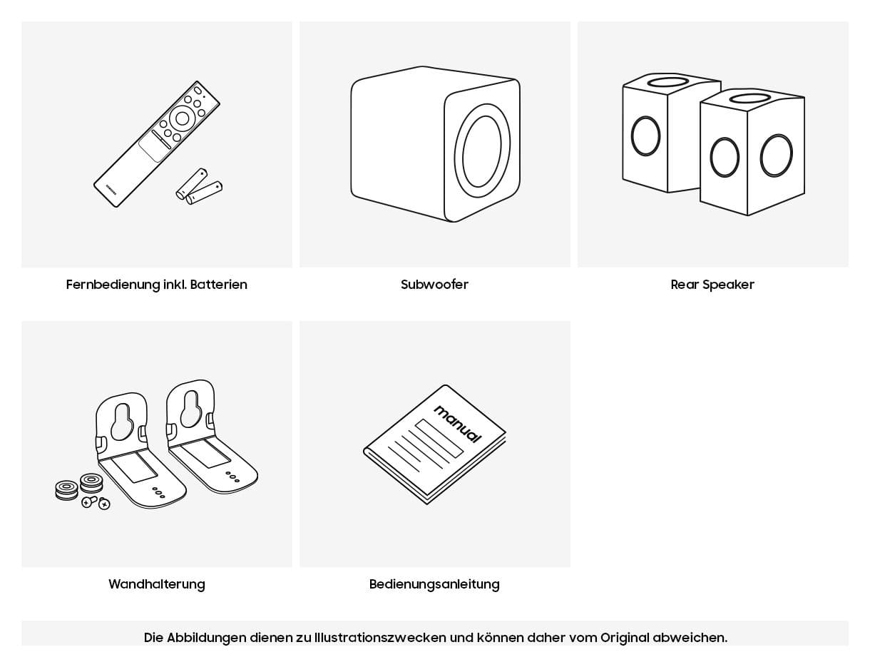 Tiefer und satter Bass dank kabellosen Subwoofers im Lieferumfang