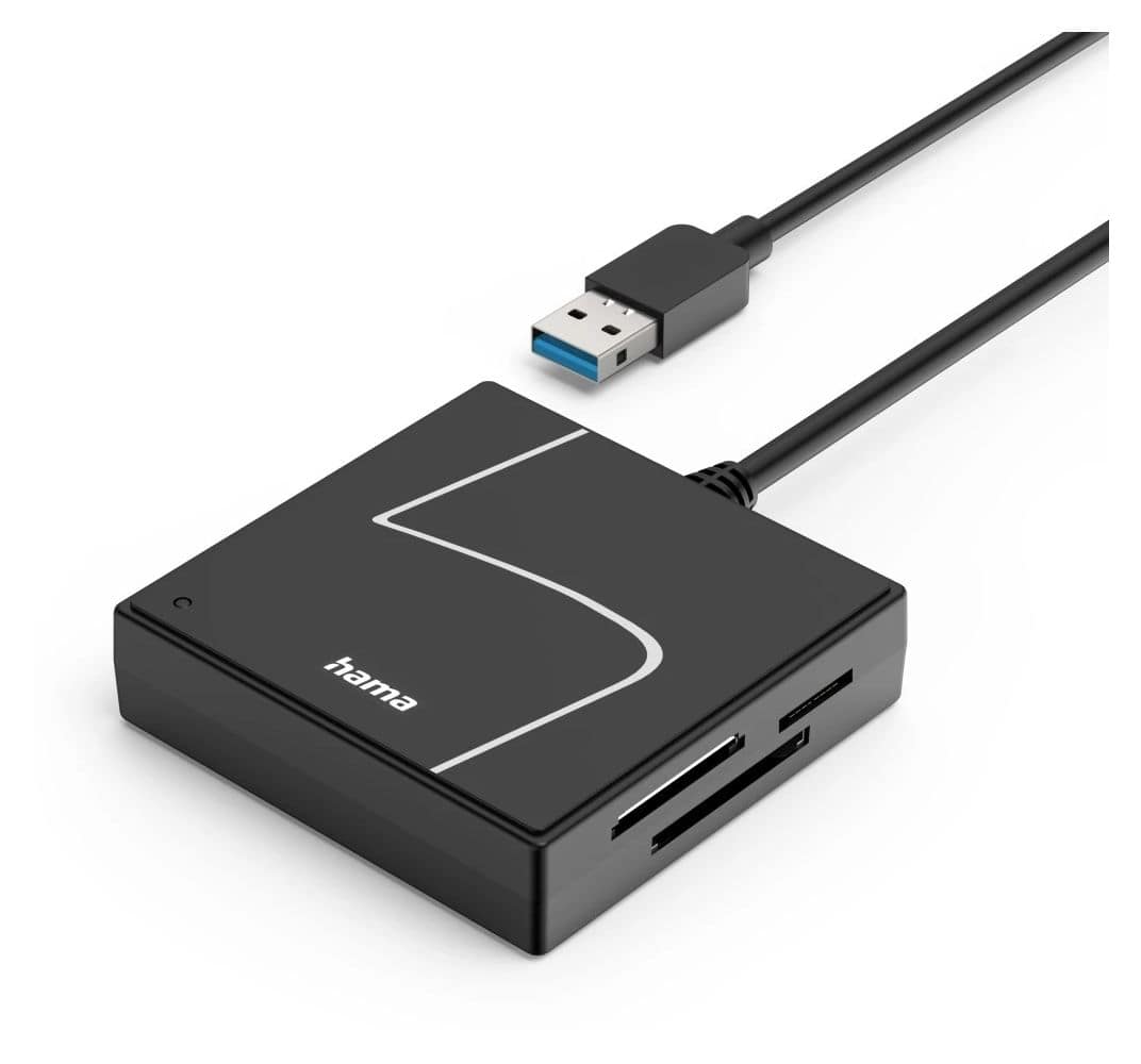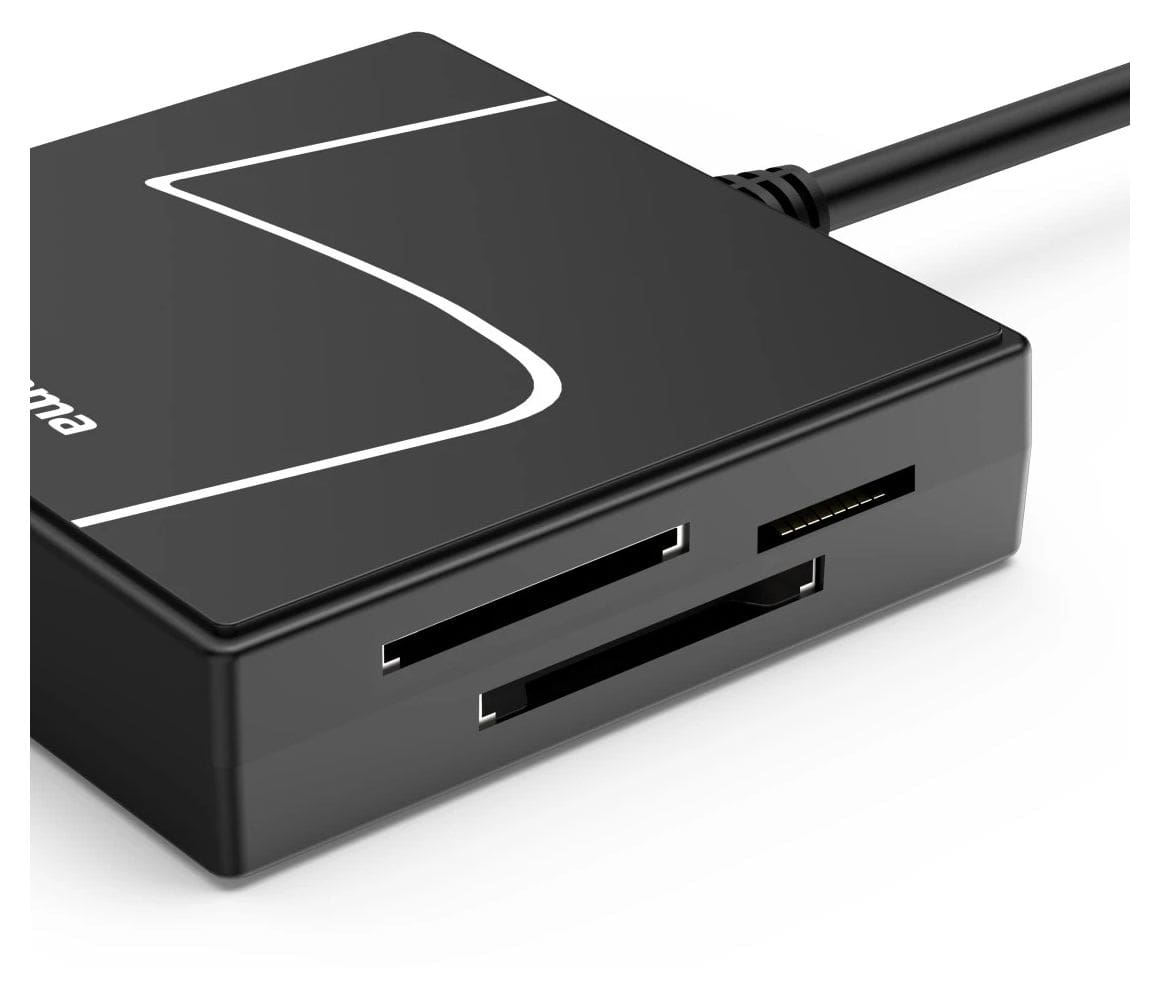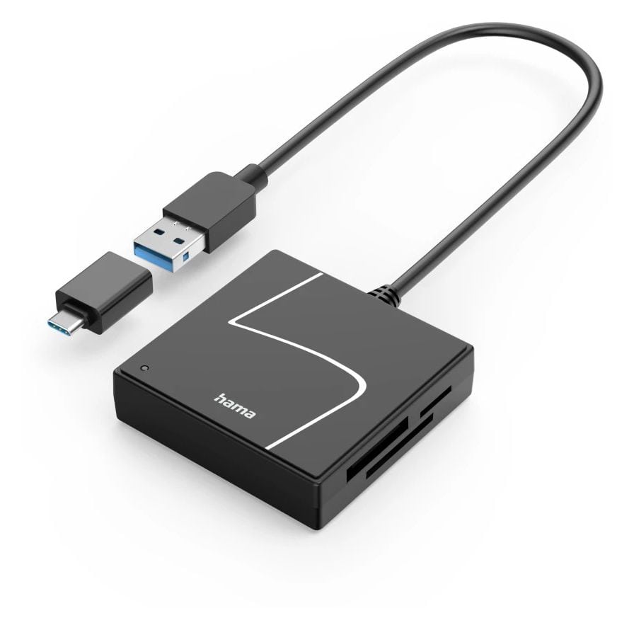 Hama 00200148. Kompatible Speicherkarten: CF, CF Typ II, MS Duo, MS PRO Duo, Speicherstick (MS), MicroDrive, MMC, SD, SDHC, SDXC, MicroSDHC,..., Produktfarbe: Schwarz, Datenübertragungsrate: 5000 Mbit/s. Schnittstelle: USB 3.2 Gen 1 (3.1 Gen 1) Type-A/Type-C. Breite: 14 mm, Höhe: 60 mm, Gewicht: 42 g. Menge pro Packung: 1 Stück(e). Anschlussadapter enthalten: USB Type-C - USB Type A