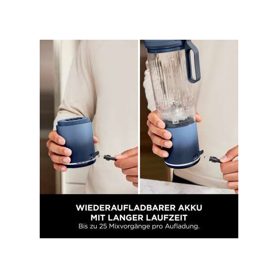 Kabelloses und leistungsstarkes Mixen: Angetrieben von einem Motor, der leistungsstärker ist als der des originalen Ninja Blast, werden harte Zutaten dank der PowerBlast-Technologie durch scharfe Edelstahlklingen zerkleinert. Verwandeln Sie hartes Eis in gehobeltes Eis für Eisgetränke. Oder zaubern Sie aus frischem und gefrorenem Obst, Gemüse, Kräutern, Nüssen und Kernen nahrhafte Smoothies, Dips, Currypasten und mehr.