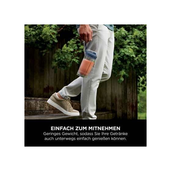 Von nahrhaften Smoothies und Protein-Shakes bis hin zu Marinaden und Kochsaucen können Sie eine Vielzahl köstlicher Rezepte umsetzen – dann drehen Sie einfach den Becher von der Motorbasis und nehmen Ihre Kreationen mit. BPA-frei hergestellt, garantiert der auslaufsichere Deckel, dass beim Transport des Bechers nichts verschüttet wird. Es gibt sogar eine Trageschlaufe und eine Trinköffnung für einfaches Tragen, Trinken und Ausgießen.