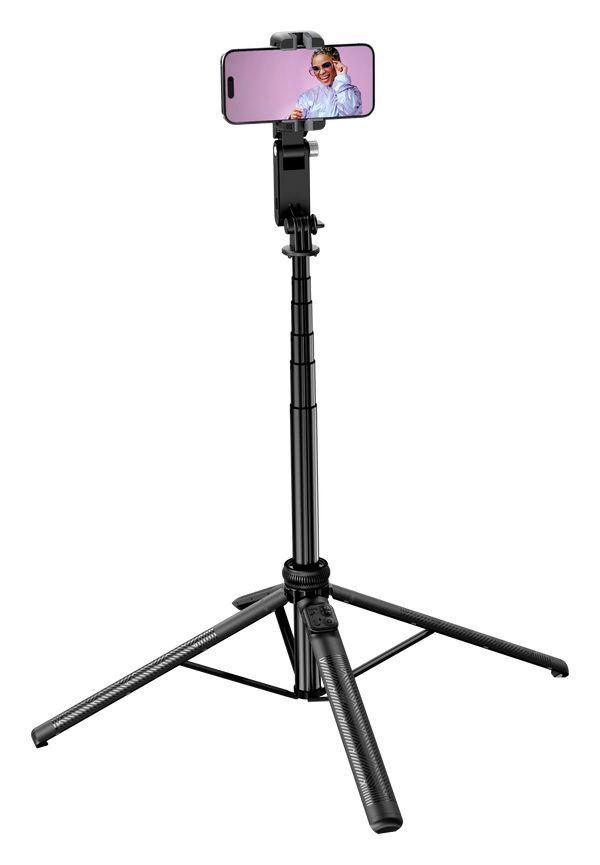 Mit dem Bluetooth*-Fernauslöser wird dein Handy bequem und freihändig gesteuert. Aufnahmen werden easy per Knopfdruck gestartet und gestoppt, ohne dass du das Stativ verschieben musst – perfekt für Selfies, Gruppenfotos und Vlogs!