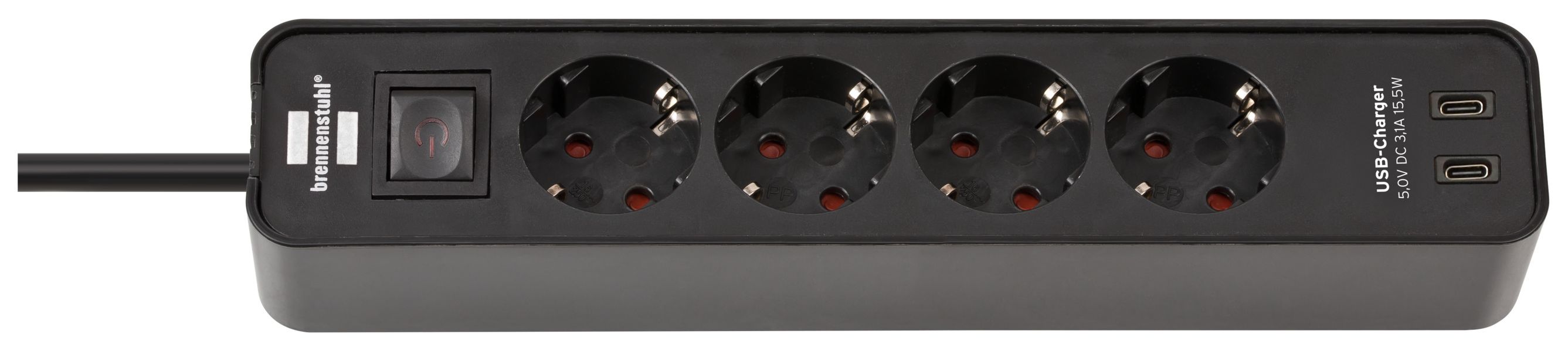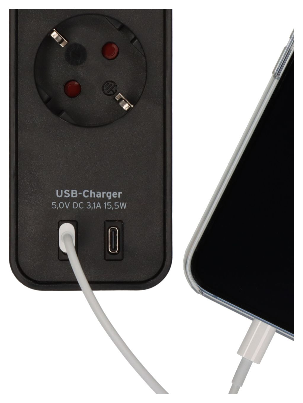 Ecolor Steckdosenleiste 4-fach mit 2 USB-Ladebuchsen, 1.5m