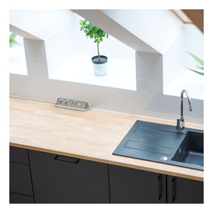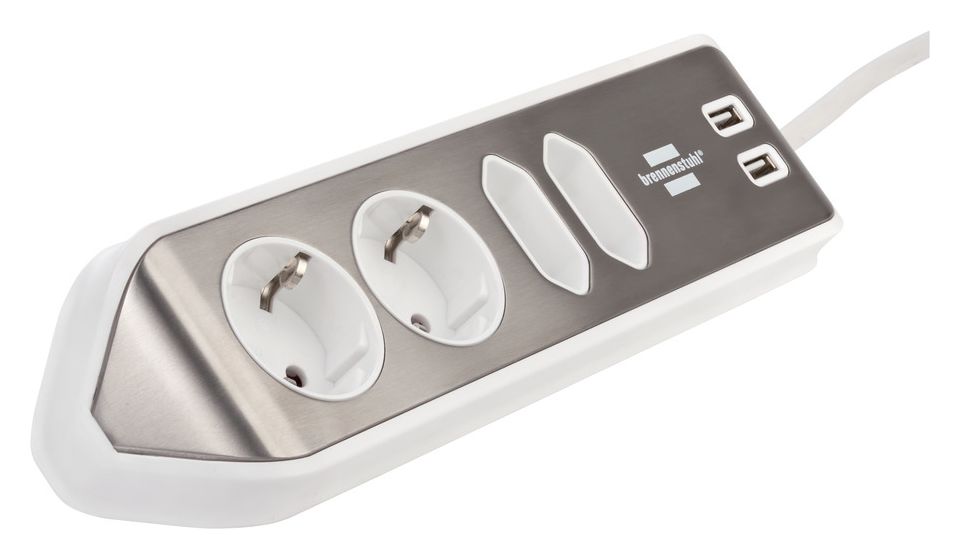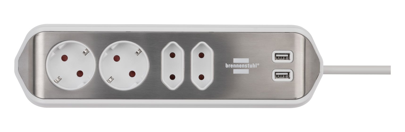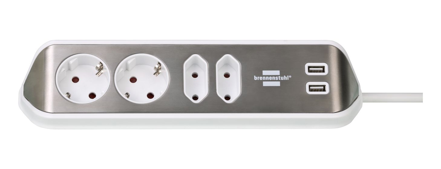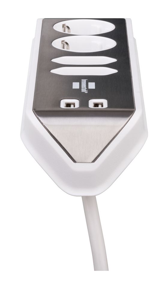 Brennenstuhl 1153590420, 2 m, Drinnen, IP20, Silber, Weiß, 4 AC-Ausgänge, 100 mm
