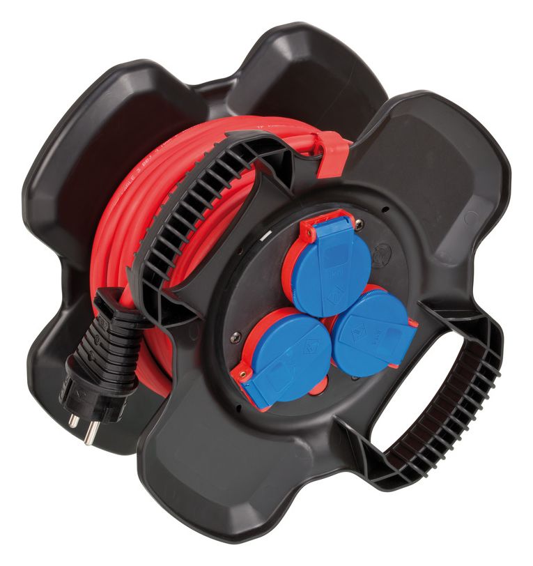 Die 10m Gummi-Kabeltrommel, bestehend aus einer Spezial-Gummimischung für Dauerbelastungen, eignet sich ideal für die kurzfristige Verwendung im Außenbereich. Die Kabeltrommel mit 3 spritzwassergeschützten Schutzkontakt-Steckdosen mit Kinderschutz und selbstschließenden Deckeln ist beständig gegen diverse Öle, Fette, Benzin und Säuren, UV- und Ozonstrahlung. Die Gummi-Kabeltrommel überzeugt außerdem durch folgende Eigenschaften: