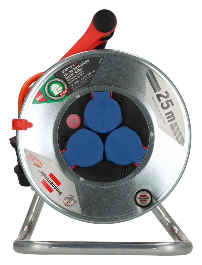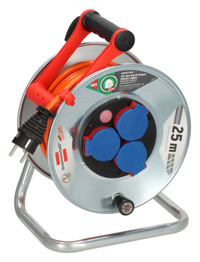 Die Garant S IP44 Kabeltrommel mit 25m Kabellänge von Brennenstuhl überzeugt durch ihre Qualität und Sicherheit in allen Bereichen. Die Outdoor-Kabeltrommel eignet sich ideal für den kurzfristigen Außeneinsatz und den sicheren Einsatz rund ums Haus. Der innovative Tragegriff "cablepilot" erleichtert die Kabelführung. Dieser pendelt auf beiden Seiten, sodass ein bequemes Tragen und Aufhängen ermöglicht wird. Das Aufrollen der Kabeltrommel wird zusätzlich durch den Drehgriff erleichtert. Sie überzeugt außerdem durch folgende Eigenschaften:
