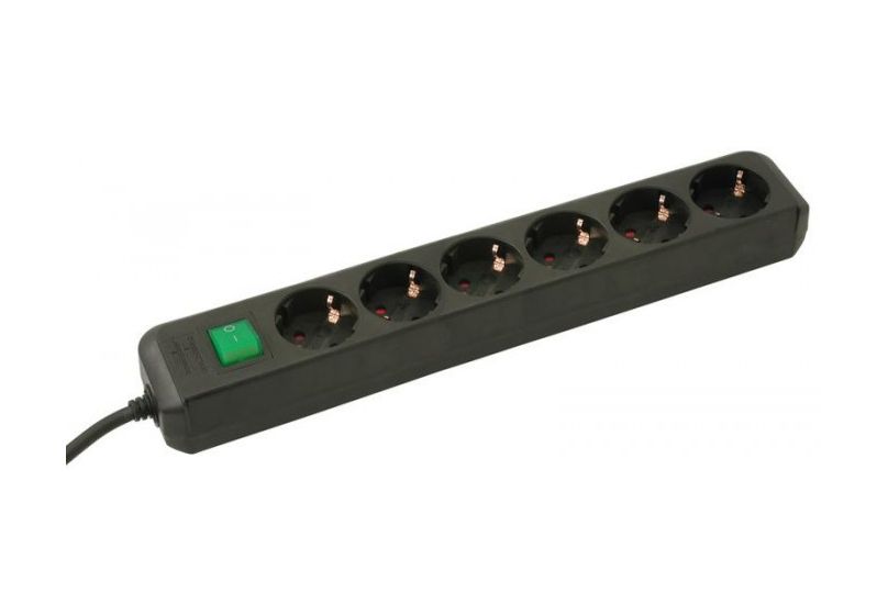 Eco-Line Steckdosenleiste mit Schalter 6-fach schwarz 1,5m H05VV-F 3G1,5