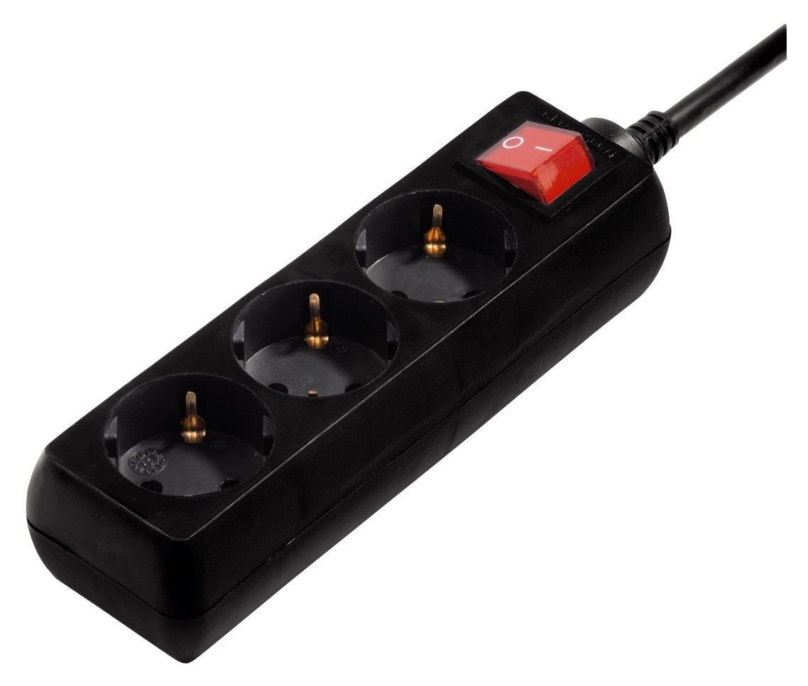 Steckdosenleiste, 3-fach, mit Schalter, 3 m, Schwarz