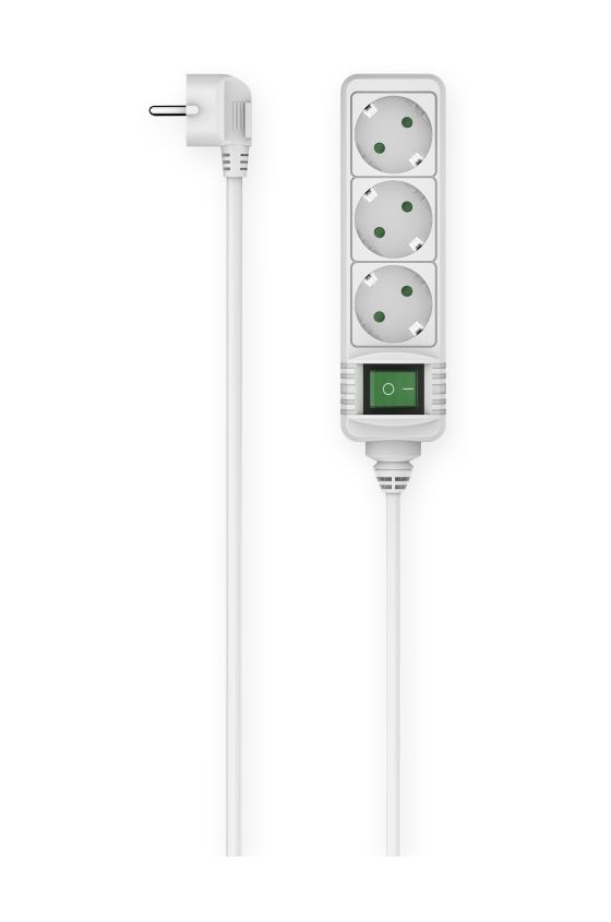 Steckdosenleiste, 3-fach, Schalter, 3 m, Weiß