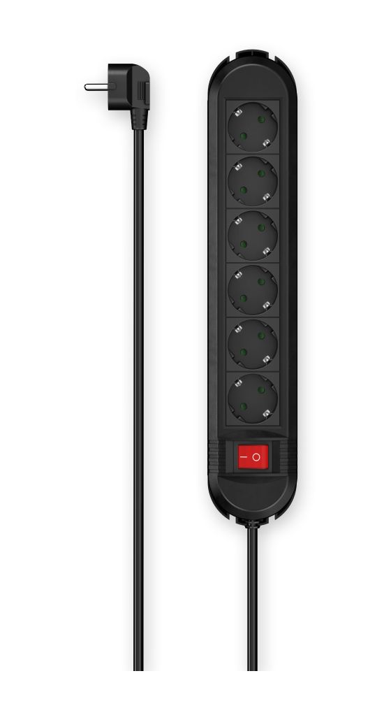 Hama 00223037, 6 AC-Ausgänge, 1,5 m, Kabelgebunden, Schwarz