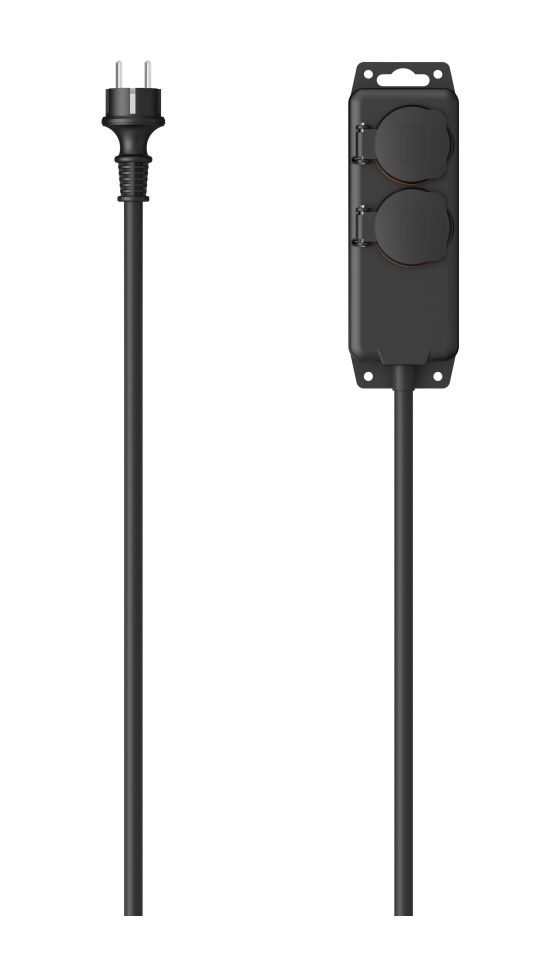 Steckdosenleiste, 2-fach, für außen IP44, Wandmontage, 2 m, Schwarz