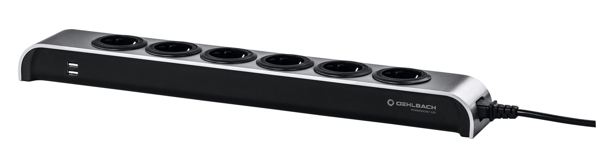 OEHLBACH Powersocket 505. Kabellänge: 1,5 m, Unterstützte Positionierung: Drinnen, Gehäusematerial: Aluminium, Kunststoff. Anzahl der AC-Ausgänge: 6 AC-Ausgänge. AC Eingangsspannung: 120 V, USB-Anschlussspannung: 5 V, Strom USB-Anschluss: 2,4 A. Gewicht: 720 g. Verpackungsbreite: 100 mm, Verpackungstiefe: 158 mm, Verpackungshöhe: 700 mm