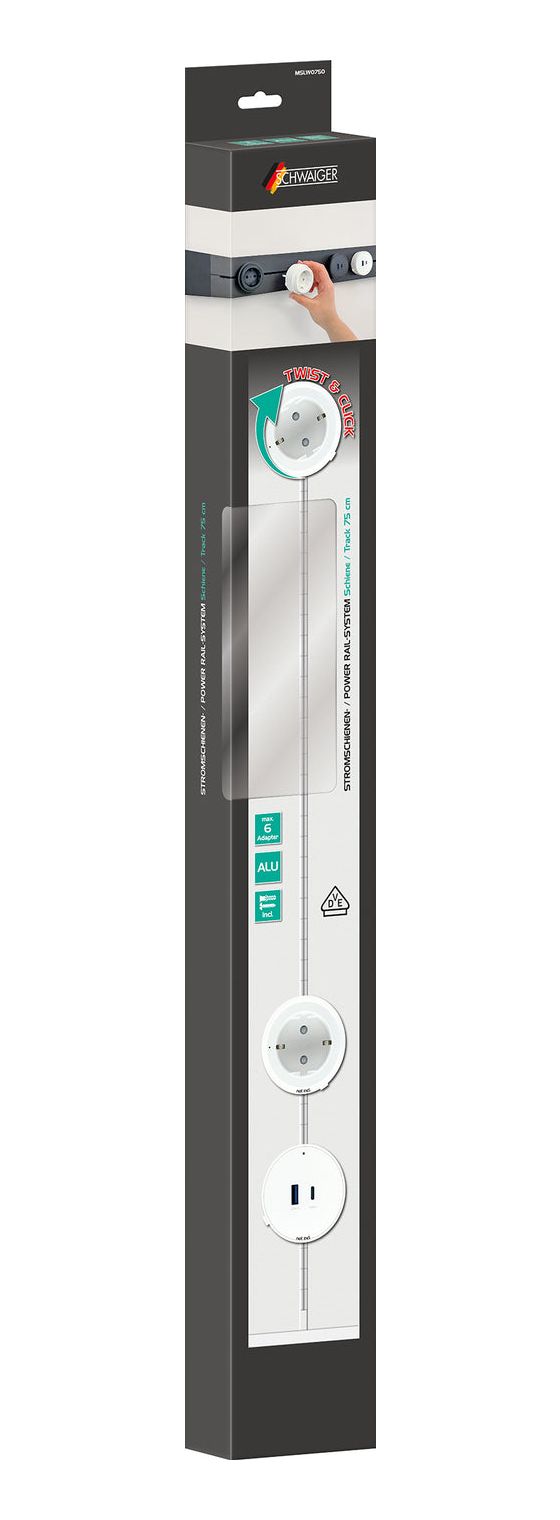 Mit der modularen Stromschiene von SCHWAIGER® erhalten Sie eine hochwertige, flexibel konfigurierbare Lösung für die feste Stromversorgung in Arbeits- und Wohnbereichen. Das System ermöglicht die individuelle Bestückung mit verschiedenen Steckdoseneinsätzen - ob Haushaltssteckdosen- oder USB-Adapter. Die Stromschiene, gefertigt aus Aluminium, wird als Ersatz für einen Haushaltsstecker montiert und wird direkt an die Stromleitung (L/N/PE) installiert. Die Montage erfolgt mittels Schrauben oder optional für eine schraubenlose Montage mit beigelegtem Klebemitteln (die Installation muss von Fachleuten durchgeführt werden). Die Materialien und Verarbeitung sind auf höchstem Niveau, um die maximale Lebensdauer zu gewährleisten. Durch die Zertifizierung durch den VDE wird die Einhaltung aller Sicherheits- und Qualitätsstandards garantiert. Erhältlich ist das modulare System in drei Längenvarianten: 0,5m, 0,75m und 1m – passend für verschiedene Raumkonzepte und Anforderungen.