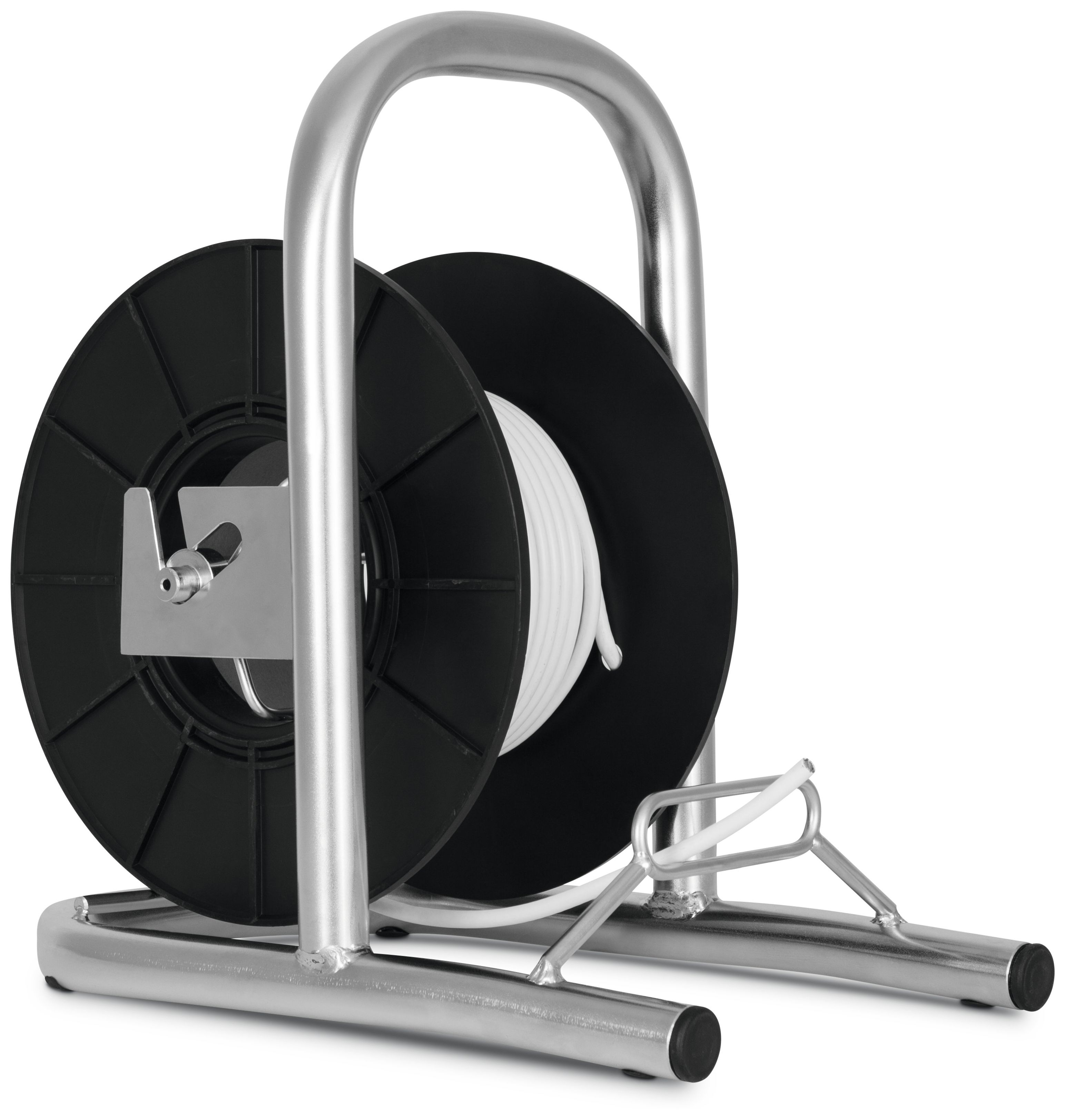 Professionelles Hand-Abspulgerät für unsere Koaxialkabel, gefertigt aus Edelstahl und ergonomisch konstruiert - dadurch exzellent ausbalanciert.