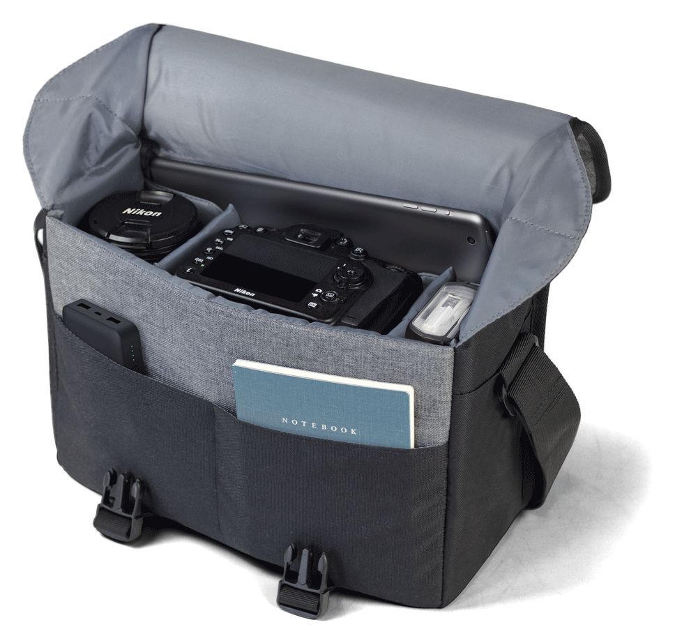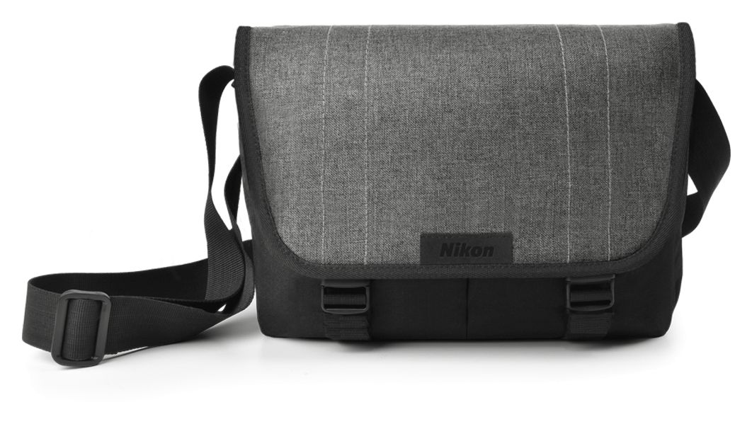 Tasche im Messenger-Bag-Stil für bestimmte Nikon-Kameras. Aus robustem, wasserabweisendem Material gefertigt.