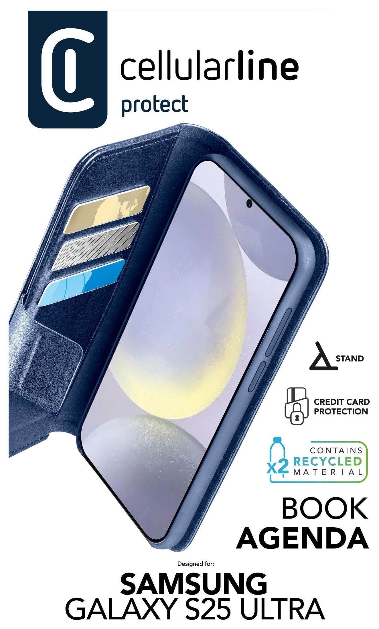 Book Agenda ist die elegante und praktische Schutztasche im Book-Style mit elegantem Finish in Leder-Optik und Magnetverschluss. Sie verfügt über praktische Kartenfächer mit „RFID & NFC Block“-Technologie, um das unbefugte Auslesen von kontaktlosen Karten zu verhindern. Durch die Ständerfunktion sind Videoanrufe und das Ansehen von Videos bequem möglich.