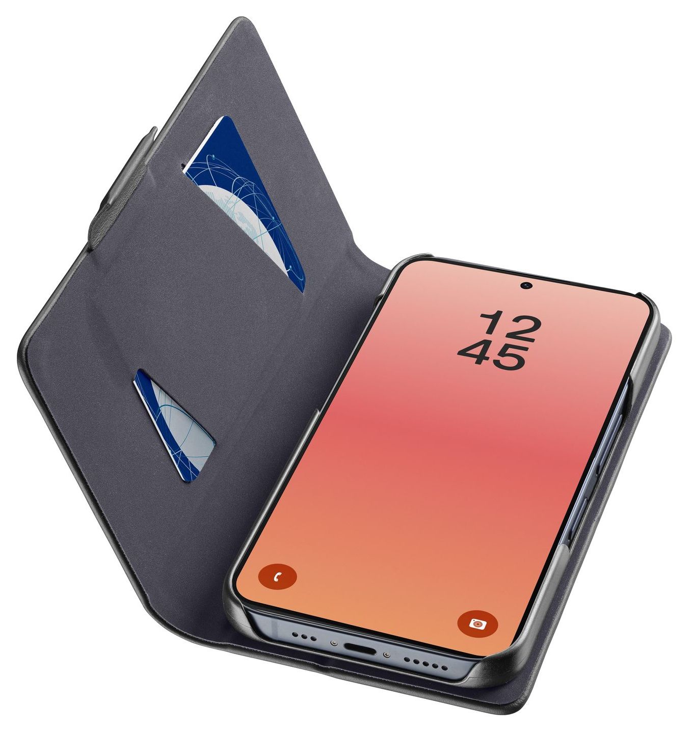 Die Schutztaschen im Book-Style passen sich perfekt der Form des Telefons an und schützen dessen Rückseite, Ränder und Display, ohne den Zugriff auf Tasten und Steckverbindungen einzuschränken. Durch den seitlichen Magnetverschluss bleibt die Klappe gut verschlossen. Das Design des Kartenfachs ist so konzipiert, dass die Karte leicht herausgenommen werden kann (Easy Card Remove).