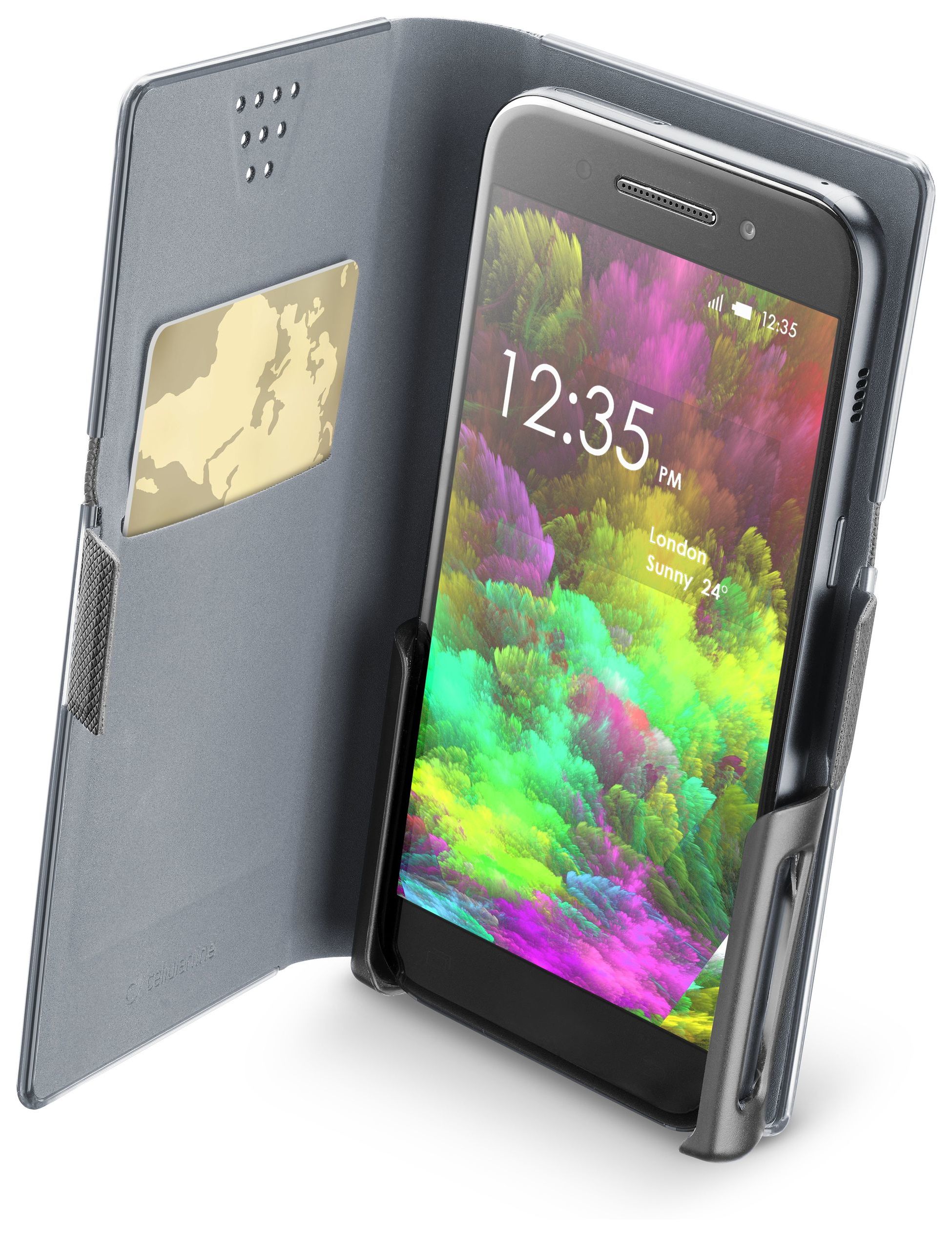 Slide & Click ist die multikompatible Schutztasche im Book-Style mit Finish in Leder-Optik. Sie verfügt über eine praktische verstellbare Steckbefestigung, dank der das Smartphone sicher in der Schutztasche untergebracht werden kann. Dank dem Faltensystem an der Rückseite hat man bei der Schutztasche Slide & Click jederzeit unmittelbaren Zugang zur Kamera, ohne das Smartphone herauszunehmen. Die Kartenfächer sorgen für einen praktischen und bequemen Gebrauch. Daher ist das Produkt bestens geeignet für alle, die gleichzeitig eine einfache aber vollständige Schutztasche suchen.