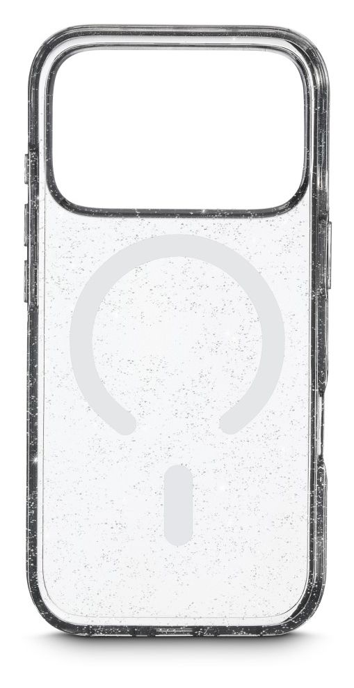 Hama Mag Glitter. Etui-Typ: Cover, Markenkompatibilität: Apple, Kompatibilität: iPhone 17 Pro, Maximale Bildschirmgröße: 16 cm (6.3"), Oberflächenfärbung: Einfarbig, Produktfarbe: Transparent