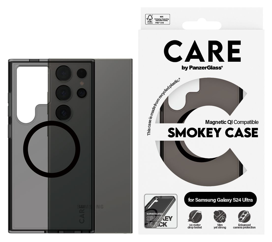 CARE™ by PanzerGlass® Smokey Case m. Schwarz Qi Compatible Samsung Galaxy S24 Ultra