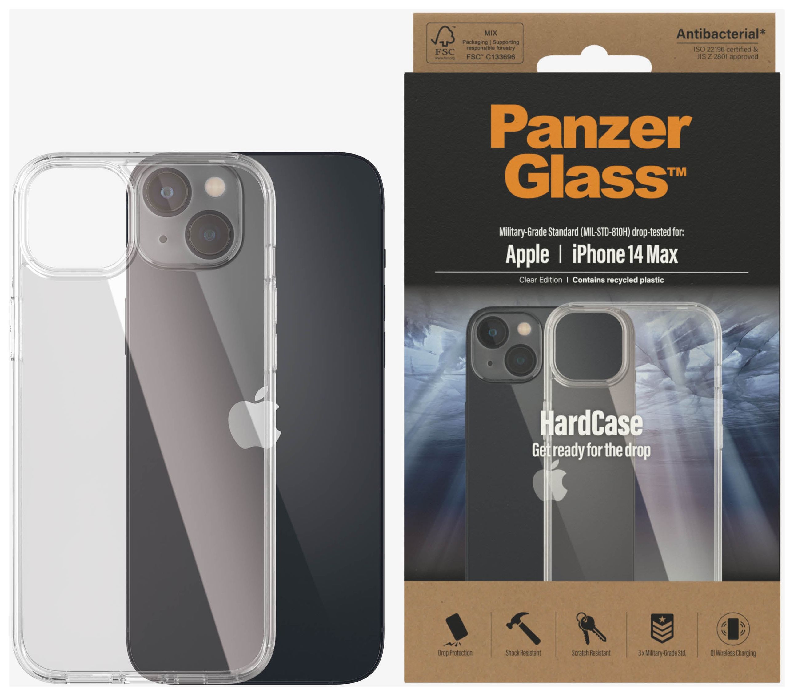 PanzerGlass HardCase. Etui-Typ: Cover, Markenkompatibilität: Apple, Kompatibilität: iPhone 14 Plus, Maximale Bildschirmgröße: 17 cm (6.7"), Oberflächenfärbung: Einfarbig, Produktfarbe: Transparent