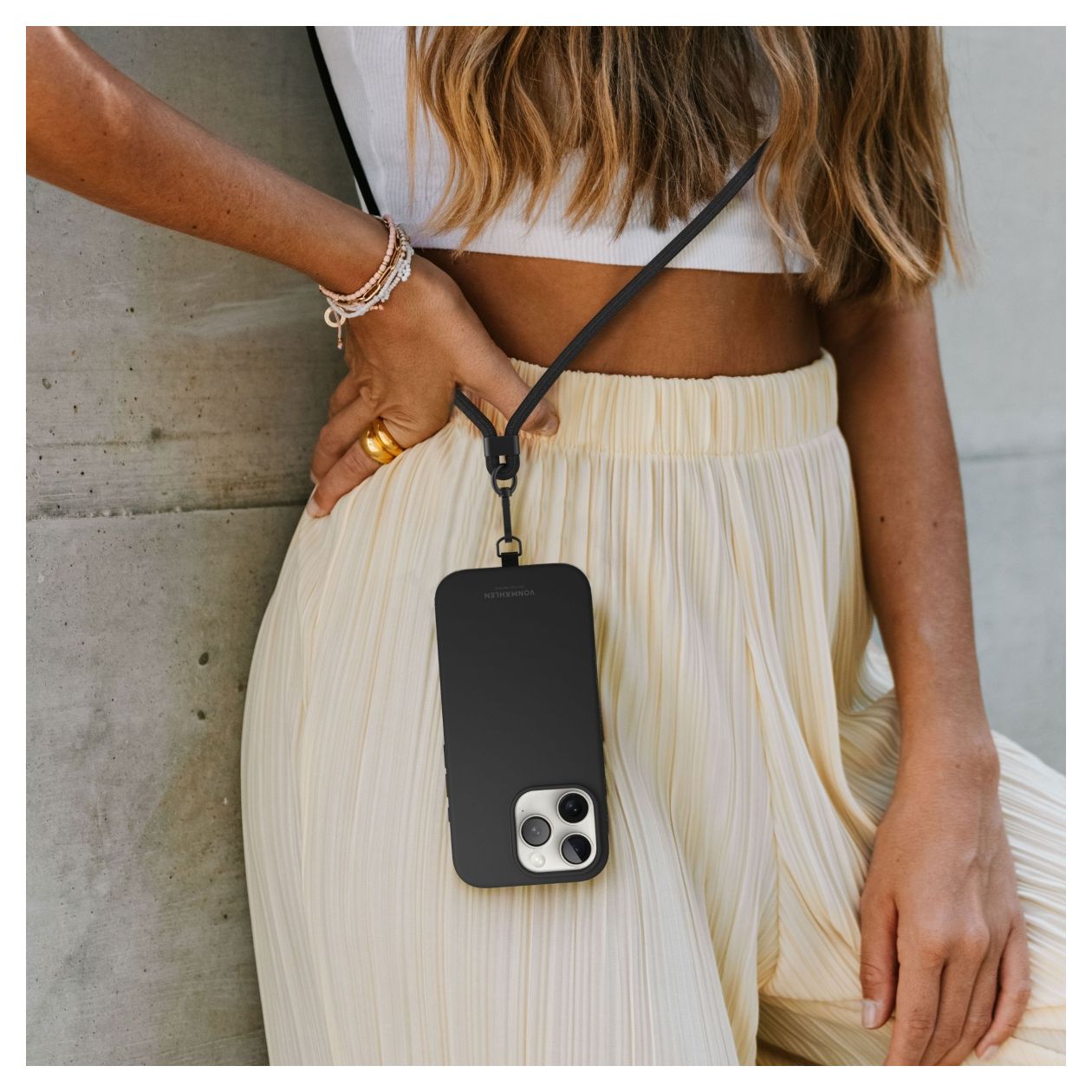 Dank der flexiblen und individuell einstellbaren Länge passt sich Infinity Go mühelos jeder Situation an. Ob du das Band ganz kurz ums Handgelenk wickelst, um dein Smartphone stets sicher bei dir zu tragen, oder es extra lang einstellst, damit es bequem über der Schulter liegt – die Entscheidung liegt ganz bei dir. Diese Vielseitigkeit macht Infinity Go zum idealen Begleiter für Alltag, Reisen, Events oder einfach entspannte Momente.