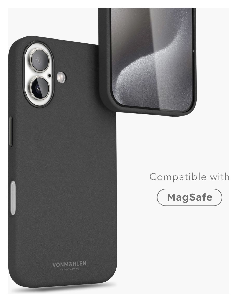 Like Leather Case ist unsere stilvolle Schutzhülle für dein iPhone und besteht aus hochwertigem, veganem Leder. Die flexible Hülle bietet stoßabsorbierenden Schutz, während die erhöhten Ränder an Bildschirm und Kamera optimalen Schutz für alle sensiblen Komponenten gewährleisten. Präzise Mikrofonaussparungen und hochwertige Metallknöpfe sorgen für eine reibungslose Bedienung, während das weiche vegane Leder eine angenehme Haptik bietet. Im Inneren schützt ein superweiches Mikrofaserfutter dein iPhone zusätzlich. Trotz ihrer robusten Schutzeigenschaften bleibt die Hülle dünn und leicht, und starke Magnete sichern den Halt für MagSafe-Zubehör.