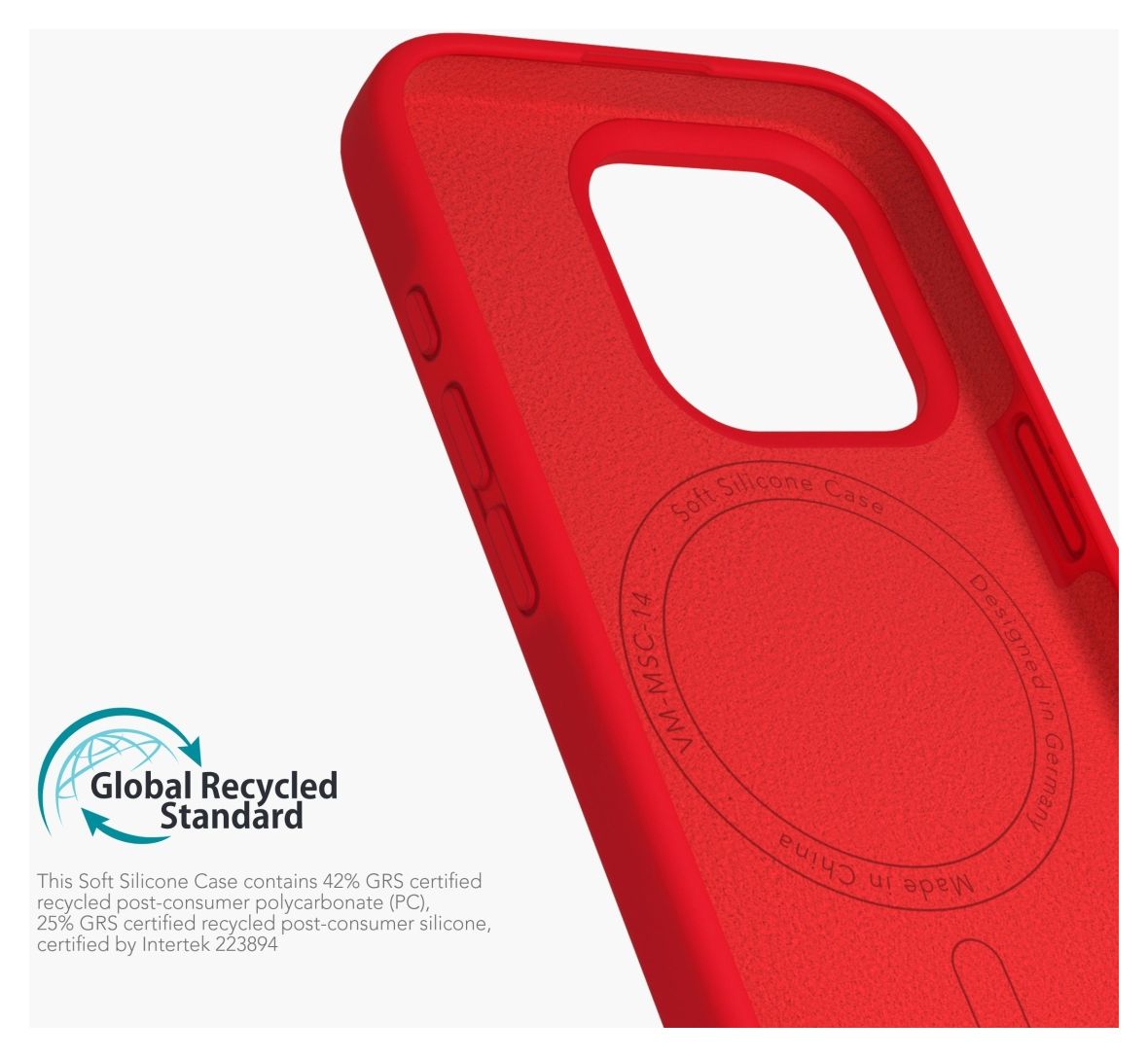 Soft Silicone Case ist Vonmählen's Silikon-Schutzhülle für dein iPhone und besteht erstmalig aus bis zu 69% GRS-zertifizierten, recycelten Materialien. Das flexible Material wirkt stoßabsorbierend und die erhöhten Ecken an Bildschirm und Kamera bieten optimalen Schutz für alle sensiblen Komponenten. Präzise Mikrofonaussparungen und Silikonknöpfe sichern eine reibungslose Bedienung, die speziell entwickelte EverSoft-Technologie sorgt für eine unvergleichbar langlebige und weiche Silikonoberfläche. Die Innenseite bietet mit superweichem Futter aus Mikrofaser zusätzlichen Schutz. Trotz seiner robusten Schutzeigenschaften bleibt die Hülle zugleich dünn und leicht. Starke Magnete sorgen für sicheren Halt und ermöglichen jederzeit die Kombination mit MagSafe-fähigem Zubehör.