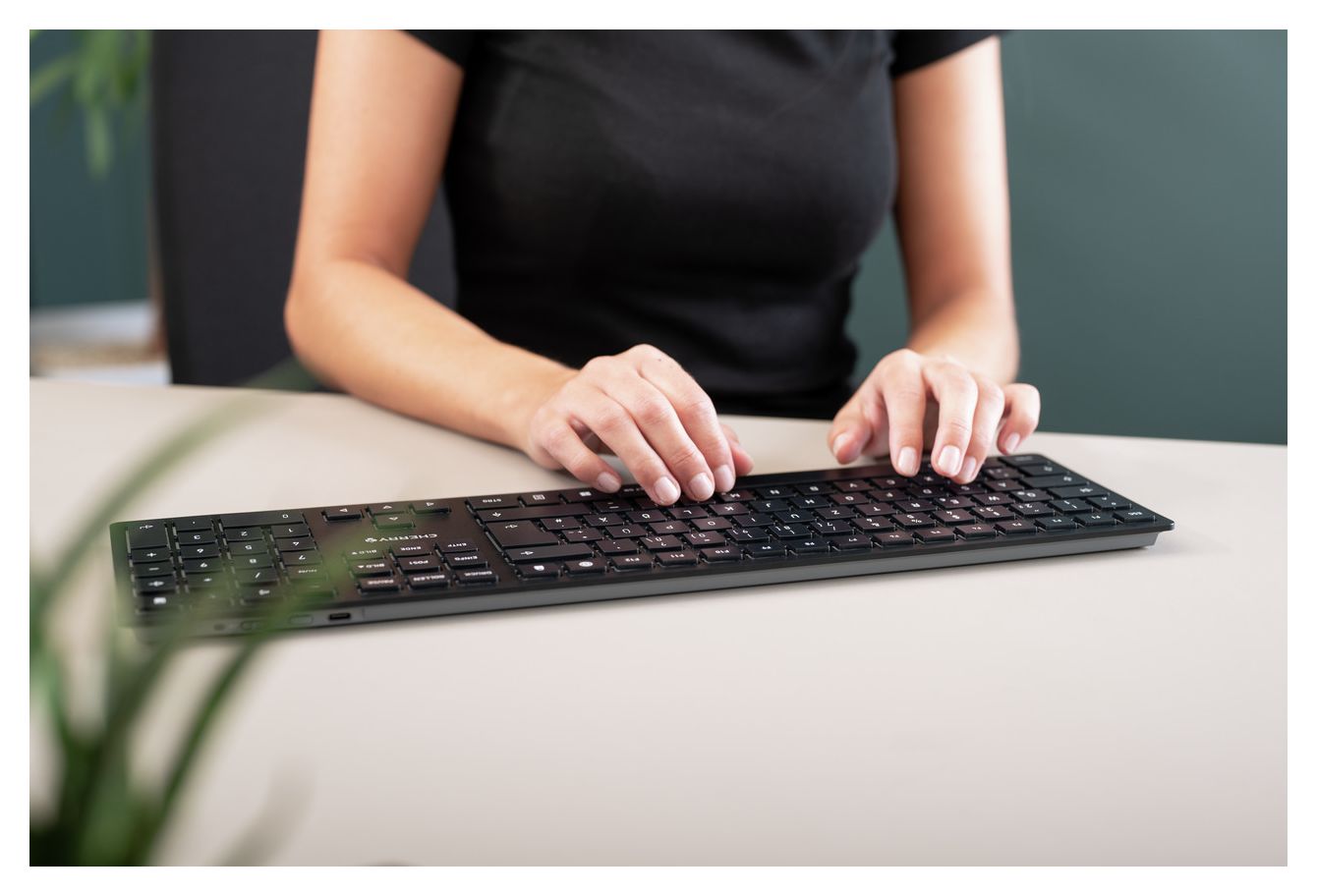 Die CHERRY KW 9100 SLIM sieht nicht nur unglaublich gut aus, sondern bietet darüber hinaus zahlreiche Extras, modernste Technik und höchste Verarbeitungsqualität