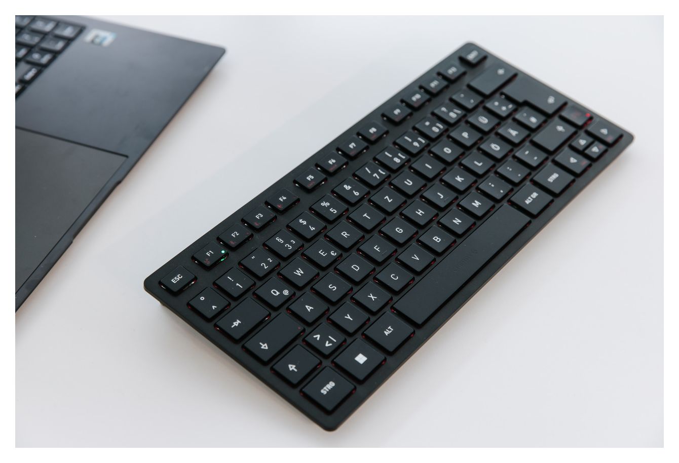 Wiederaufladbare Multi-Device Kompakttastatur mit 2,4 GHz Funk-, Bluetooth® 5.0- und Kabelverbindung